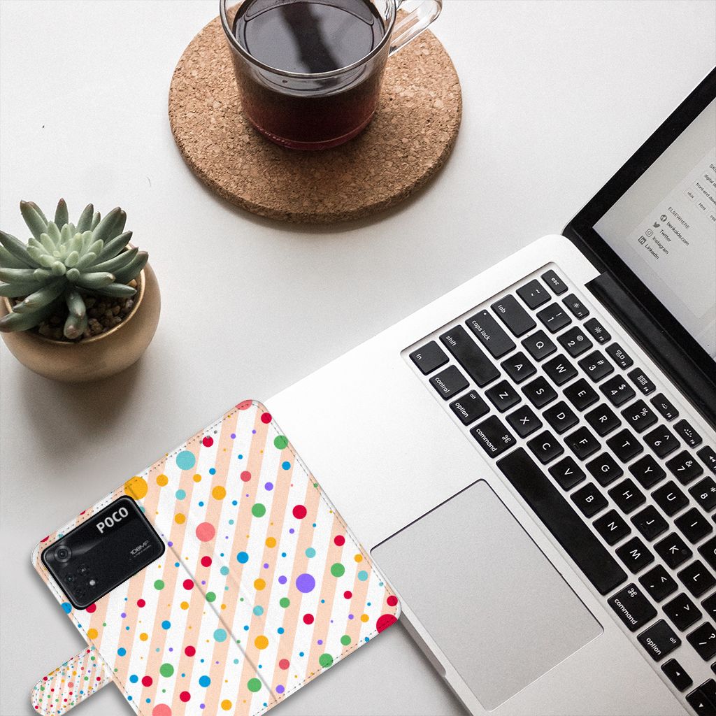 Een Xiaomi Poco X4 Pro 5G Telefoon Hoesje met verschillende kleuren stippen is een schitterende bescherming van jouw smartphone. Het boekhoesje met het design Dots in alle kleuren van de regenboog komt voor jou als geroepen. Maak je geen gebruik van dit zeer mooie hoesje, dan kan het met jouw smartphone een beetje beroerd aflopen. Dit mooie boekhoesje met verschillende kleuren stippen zorgt voor een volledige bescherming van je smartphone en wordt aan alle zijden bedrukt. Sommige stippen staan ook op het magnetische lipje aan de buitenzijde. Verder is de houder aan de binnenzijde van TPU. Jouw telefoon is dus zeer goed opgeborgen en kan geen kant op. Met een hoesje met stippen in verschillende kleuren op alle zijden blijft jouw telefoon volledig in tact. Heb je liever een boekhoesje met stippen in andere opvallende kleuren? Ontwerp dan zelf case met je eigen foto’s en teksten!