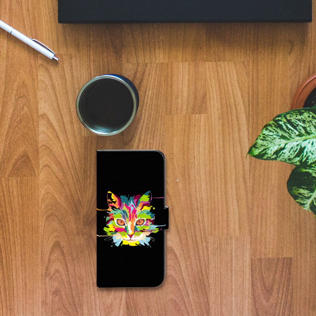 Als jij van katten houdt en op zoek bent naar een uniek hoesje, dan is dit het hoesje wat je wilt hebben. Op de voorkant van dit Leuk Hoesje vind je namelijk een mooie afbeelding van een kat in alle kleuren van de regenboog op een zwarte klassieke achtergrond. Naast dat het een mooi hoesje betreft, is het ook nog eens ontzettend handig. Zo kun je in deze bookcase wel twee á drie pasjes en briefgeld kwijt. Hiermee kun je jouw belangrijkste bezittingen op een plek bewaren in het boekhoesje en kun je jouw portemonnee voortaan thuislaten. Een bookcase heeft daarnaast ook nog het voordeel dat jouw telefoon aan alle zijdes wordt beschermd in dit leuke hoesje, dubbel zo handig dus!