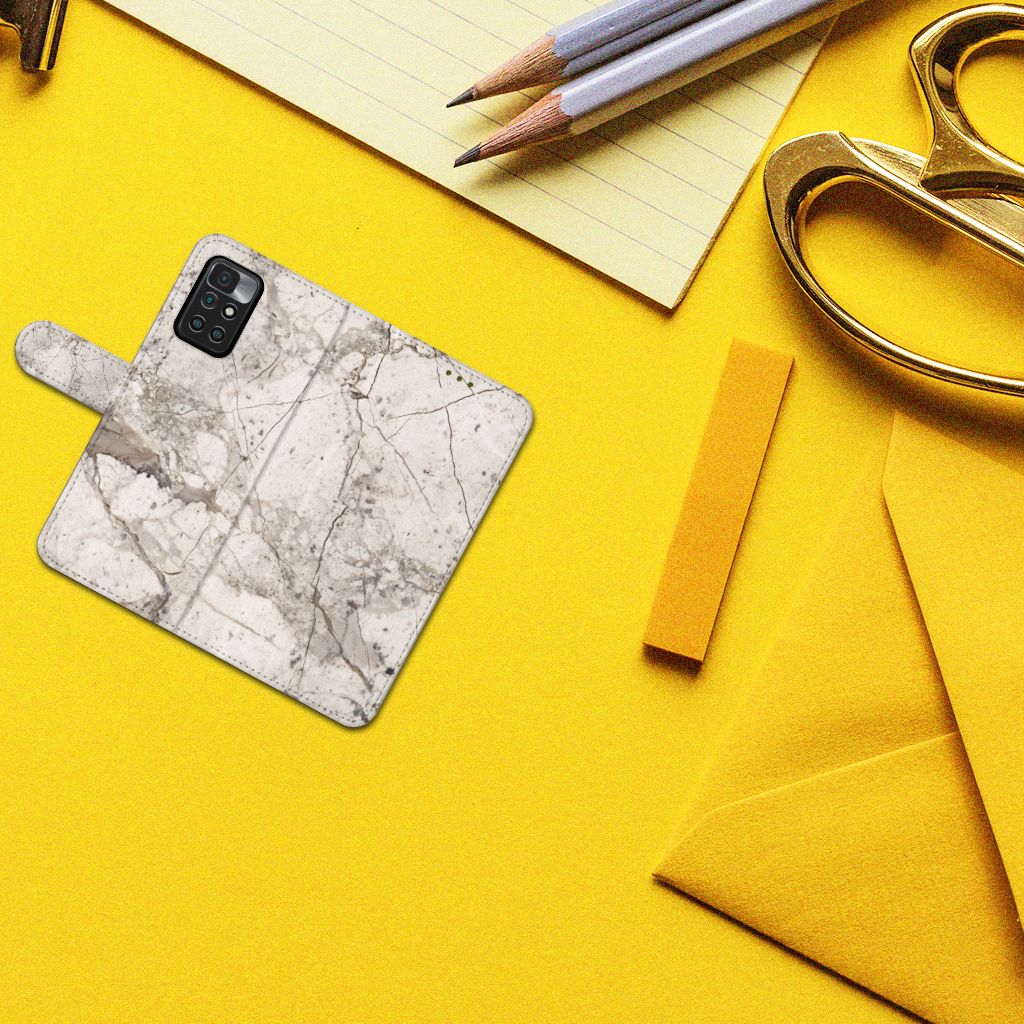 Xiaomi Redmi 10 Bookcase met pasjes Marmer Beige