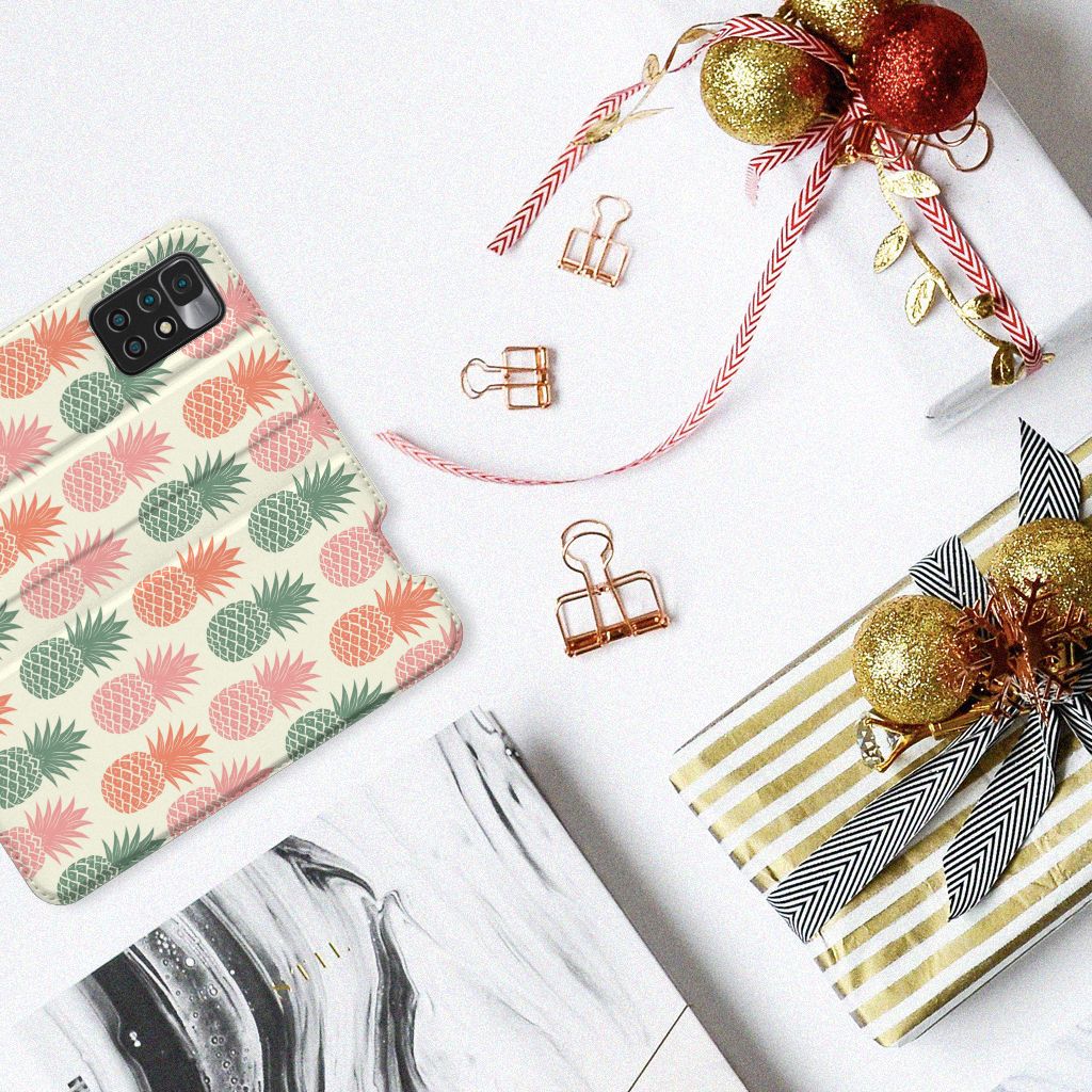 Ananas is een woord uit het Tupi, de taal van de Tupi-indianen, en betekent uitmuntende vrucht. Dit fruit van zeer hoge kwaliteit staat op onze superieure boekhoesjes, stand cases, hard cases en TPU cases. Jij blijft er gezond uitzien als je zo nu en dan een hap neemt van een Ananas , jouw smartphone blijft tip top in orde als je er een leuk telefoonhoesje omheen doet. Een ananas heeft stevig, veerkrachtig vruchtvlees. Een beetje te vergelijken met het TPU in onze hoesjes. TPU is elastisch materiaal, dat zeer buigzaam is. Vandaar dat het zeer schokbestendig is. Het ananas design staat op een stand case. Deze Xiaomi Redmi 10 Flip Style Cover beschermt jouw telefoon aan alle kanten en beschikt over een 1 opbergvakje en een speciale standaard. Het hoesje wordt afgesloten met een magneet aan de binnenzijde. De houder aan de binnenzijde is van TPU.