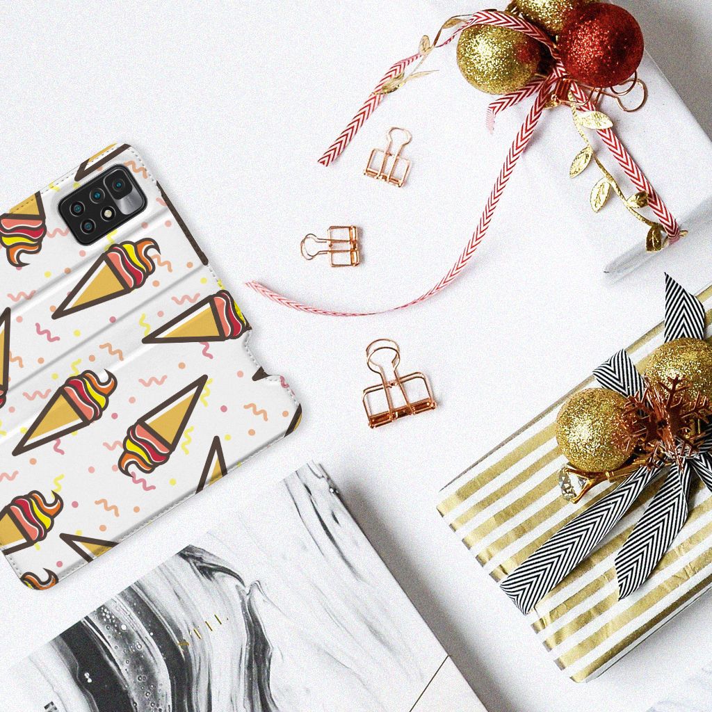 Een vrolijke Xiaomi Redmi 10 Flip Style Cover met daarop verschillende ijsjes. Als je daar geen zomers gevoel meer van krijgt, weten wij het ook niet meer. De zomer en ijsjes zijn onlosmakelijk met elkaar verbonden. Tijdens een bezoekje aan het strand mag een lekker ijsje bijvoorbeeld niet ontbreken. Een design hoesje met lekkere Icecream print past daar natuurlijk ook ontzettend goed bij. Jouw telefoon is helemaal beschermd met een stand case met ijsjes design. De aankoop van deze case is een heerlijke investering, die zich gegarandeerd terugbetaalt. Alle zijden van dit hoesje worden bedrukt met ijsjes. De case heeft een speciale standaard en de houder aan de binnenzijde is van TPU. Onder alle weersomstandigheden zal deze case met opbergvakje perfect functioneren, ook in de zomer met een ijsje in je hand. Dit smaakvolle hoesje is zeer goedkoop te bestellen en wordt zeer snel bezorgd.