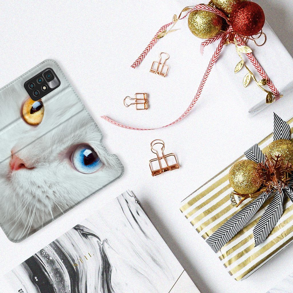 Witte katten zijn natuurlijk extra speciaal, vandaar we een exemplaar op een design hoesje hebben gezet. Een witte kat schijnt trouwens ook slechter te kunnen horen dan katten met een andere kleur. Deze witte kat staat op een zeer prominente wijze op een stand case. Deze stand case met witte kat ziet er geweldig uit en is voorzien van verschillende uitsparingen en een speciale standaard. Een Xiaomi Redmi 10 Hoesje maken met witte kat beschermt jouw smartphone perfect. Alle zijden van de case zijn bedrukt. Jouw smartphone wordt erg duurzaam met dit design hoesje. Het TPU aan de binnenzijde is zeer flexibel en het pu-leer oogt chique. Verder heeft de case een houder voor bijvoorbeeld je rijbewijs aan de binnenkant.