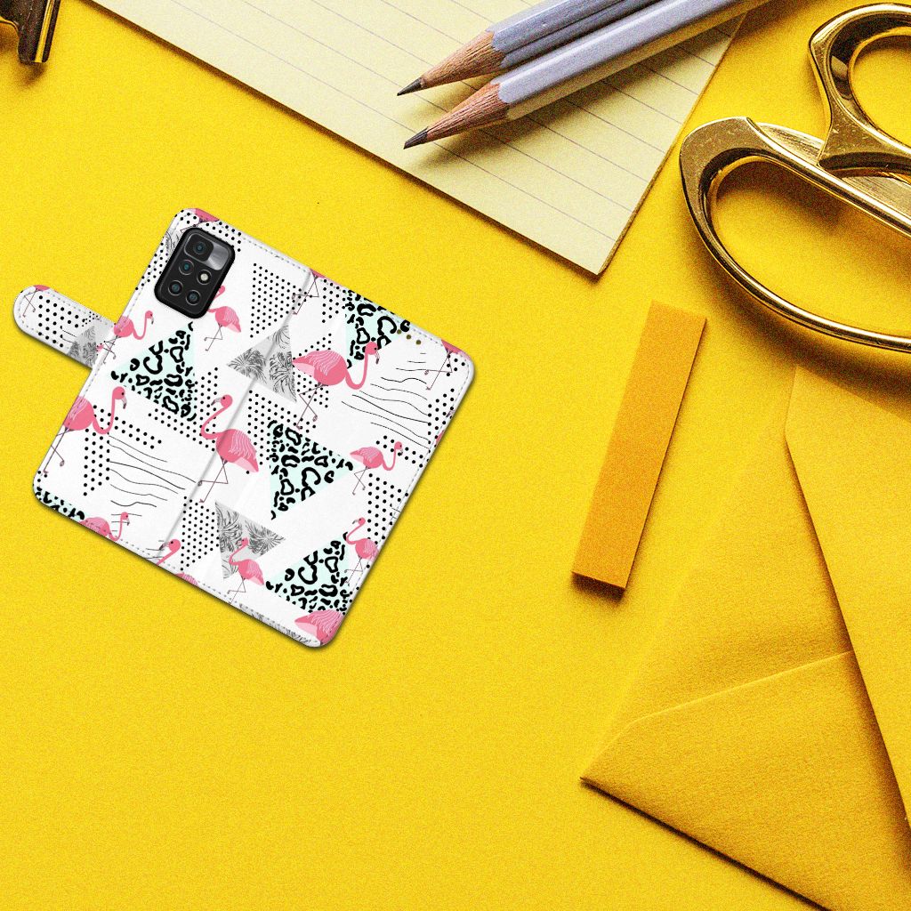 Xiaomi Redmi 10 Telefoonhoesje met magnetische lipje als sluiting Flamingo Triangle