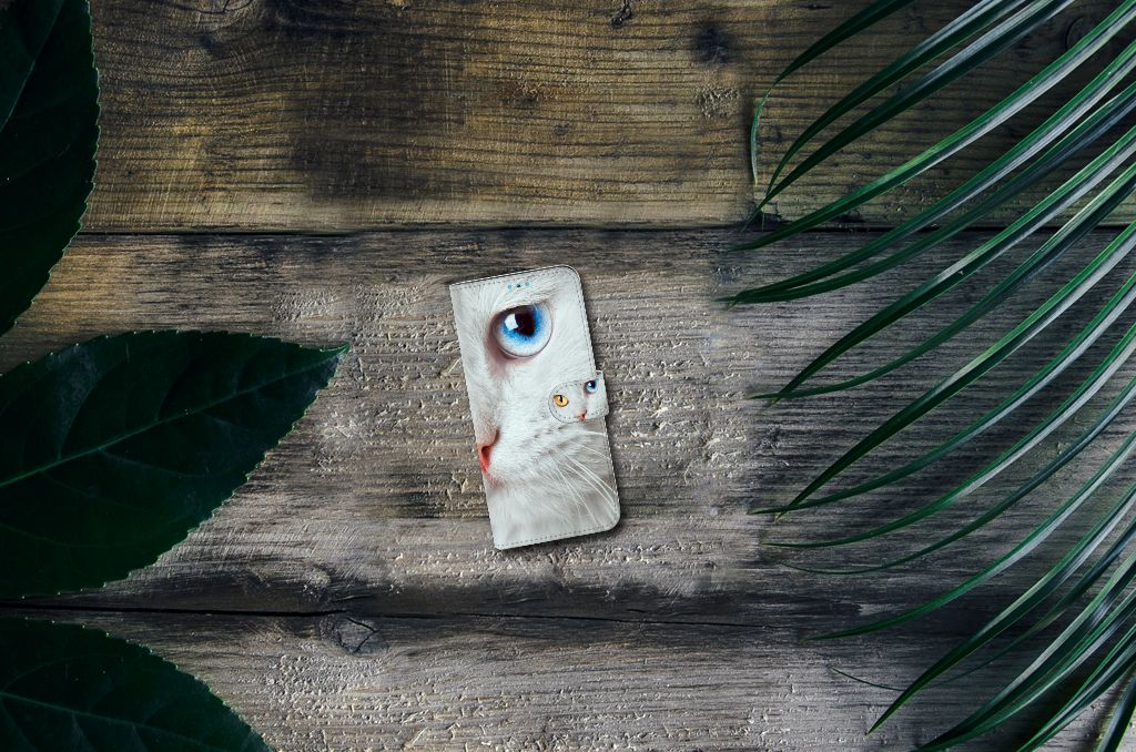 Xiaomi Redmi 10 Telefoonhoesje met magnetisch lipje als sluiting Witte Kat
