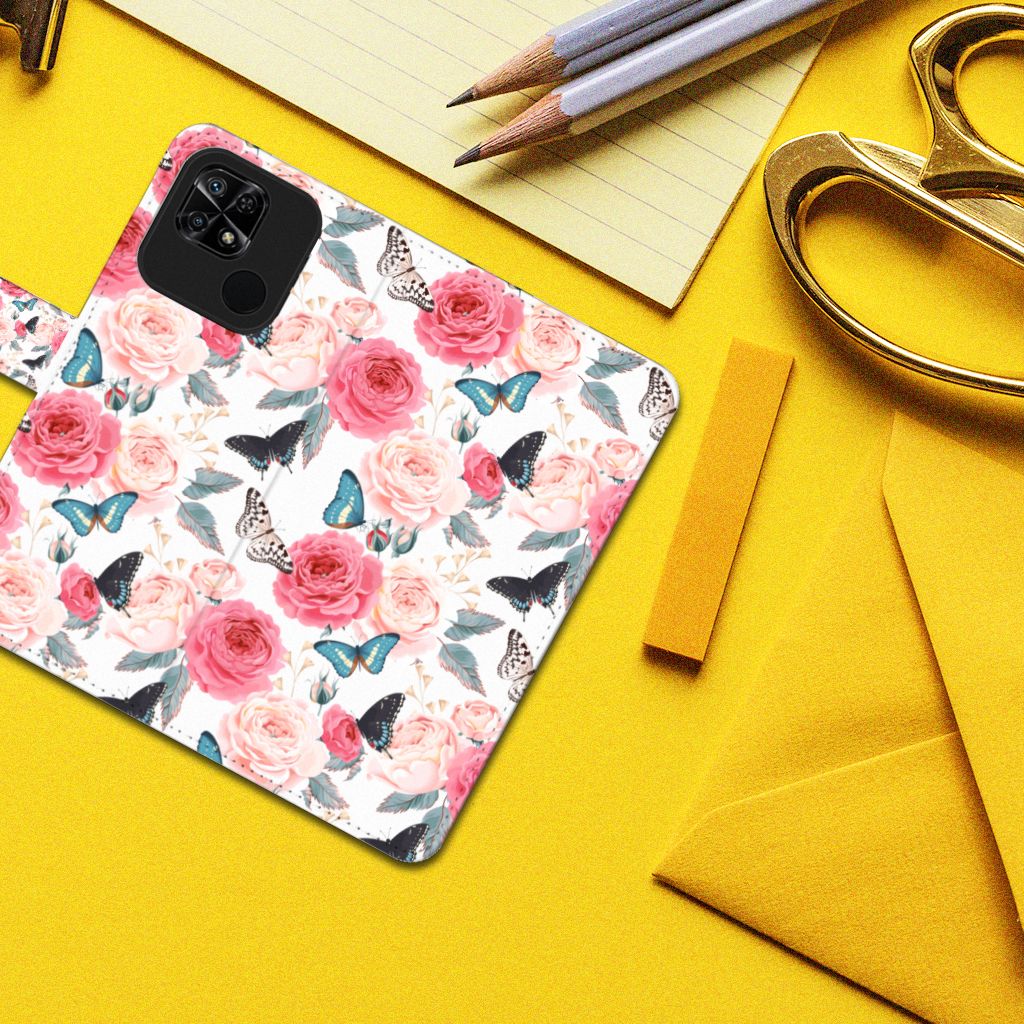 Xiaomi Redmi 10C Hoesje gemaakt van TPU en kunstleer Butterfly Roses