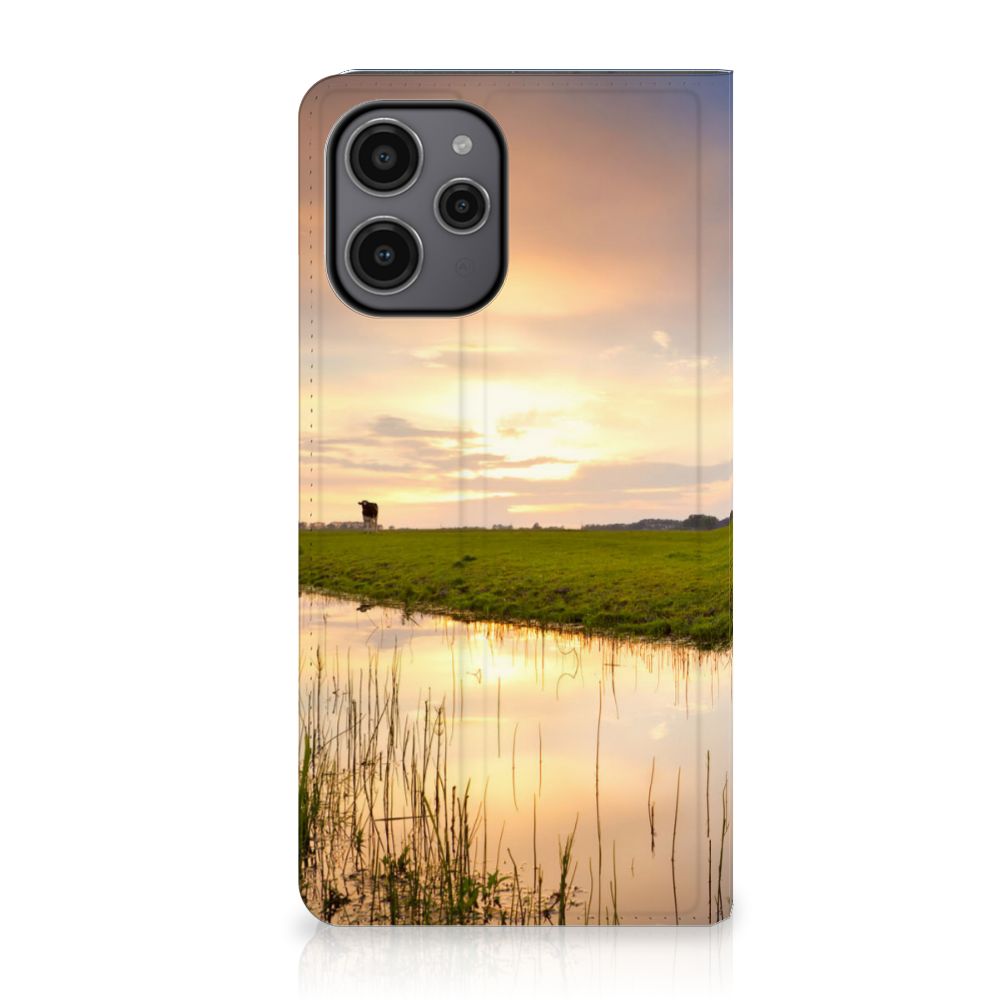 Het levert een idyllisch plaatje op, dit hoesje met een koe en ondergaande zon op de achtergrond. Door een koe buiten te laten lopen en grazen, hebben ze minder kans om ziek te worden. De Koe graast het liefst met soortgenoten, al zijn deze een stukje van de koe op de case verwijderd. Dit levert ook een mooi plaatje op, zoals je kunt zien op dit design hoesje. Deze stand case ziet er strak uit en is voorzien van verschillende uitsparingen. Een Xiaomi Redmi 12 4G Hoesje maken met magneet aan de binnenzijde beschermt jouw smartphone overal. Alle zijden zijn bedrukt. Koeien hebben lange graasperioden nodig, afgewisseld door rust- en herkauwperioden. Zo goed als grazen voelt voor koeien, zo lang zal jouw design hoesje meegaan. De binnenkant van de stand case is van TPU, de buitenzijde van leer.