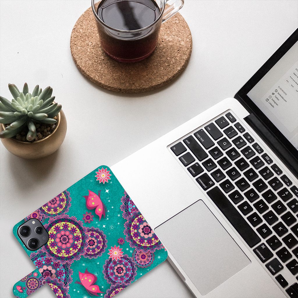 Met deze bookstyle case val jij sowieso op. De vlinders en mandala-achtige cirkels hebben verschillende heldere en opvallende kleuren. Het design op dit Xiaomi Redmi 12 Hoesje heeft bovendien iets hippie-achtigs. De heldere kleuren en patronen worden op dit telefoonhoesje met behulp van onze geavanceerde printer gedrukt. Deze printer kan alle zijden van de bookstyle case bedrukken. Zelfs het magnetische lipje wordt bedrukt met het design van cirkels en vlinders. Dit wordt bovendien uitgevoerd met duurzame inkt, zodat het hele hoesje duurzaam is. Deze bookstyle case zal langer meegaan dan de meeste design hoesjes. Dit is goed voor het milieu en voor jouw portemonnee.