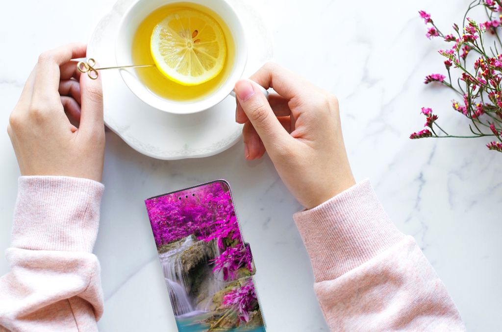 Op deze Xiaomi Redmi 7A Flip Cover zie je een kalme waterval en de achtergrond is gevuld met paarse bomen. Samen creëert dit een prachtig en kleurrijk spektakel, iets wat je graag op je Xiaomi Redmi 7A hoesje ziet. Wanneer je hiernaar kijkt, word je direct kalm. Als jij je even boos of verdrietig voelt, hoef je alleen maar naar jouw boekhoesje te kijken om weer blij te worden. Ook jouw telefoon zal blij zijn met deze Flip Cover aangezien deze goede bescherming biedt. Als jij je telefoon per ongeluk laat vallen, is er niets aan de hand. Het hoesje zorgt ervoor dat de telefoon intact blijft. Zelfs als hij op het beeldscherm zou vallen, is er dankzij de magnetische sluiting, niets aan de hand.