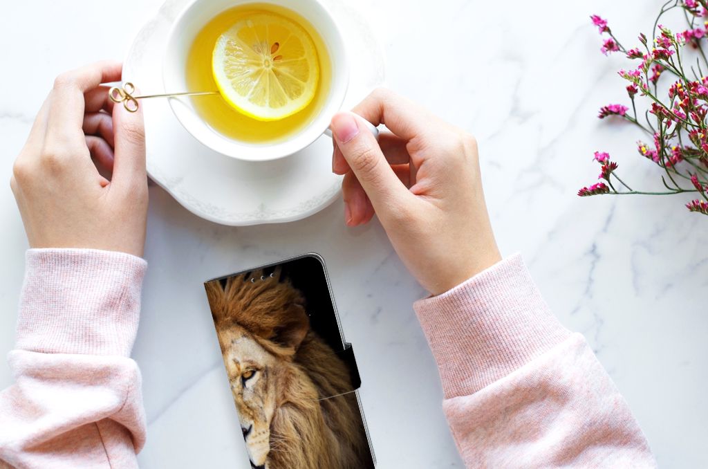 Xiaomi Redmi 7A Telefoonhoesje met Pasjes en met magnetische sluitclip Leeuw