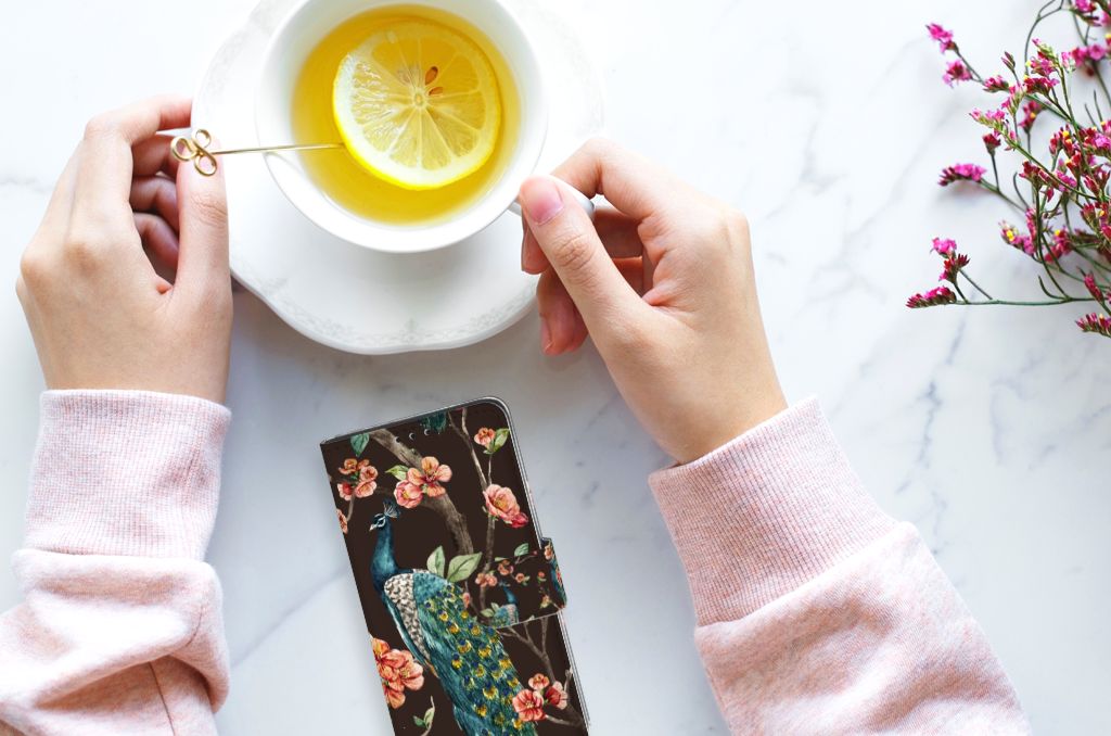 Xiaomi Redmi 7A Telefoonhoesje sluit met magnetisch lipje Pauw | Bloemen