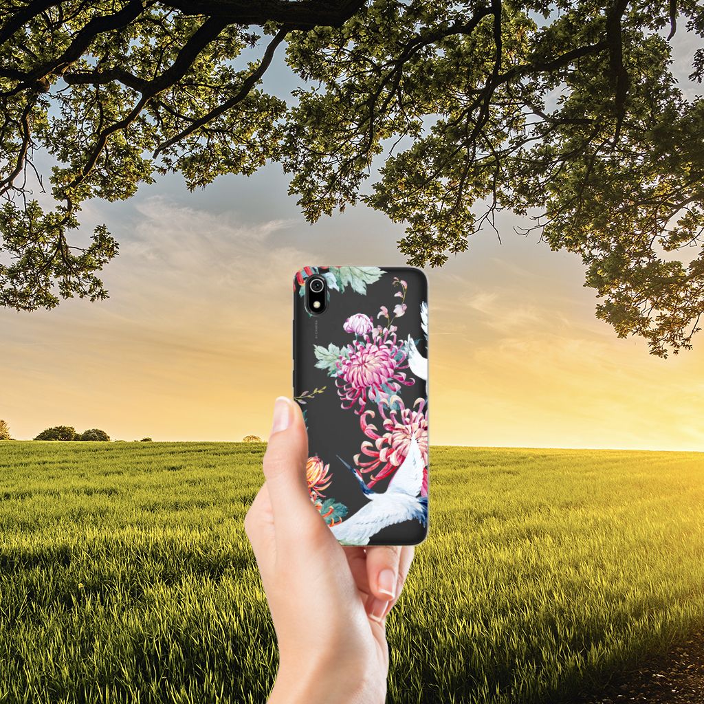 Verspreid over de hele wereld leven 19 soorten ooievaars. De spanwijdte – dat is de afstand van vleugeltip tot vleugeltip – van een volwassen ooievaar kan 2.50 meter bedragen. De gebieden waarin de ooievaar broedt, liggen in heel Europa, het Midden-Oosten, West- en Centraal-Azië en Noordwest-Afrika. Het ideale leefgebied van de ooievaar is een half open tot open landschap met veel afwisseling in grondgebruik en begroeiing. De begroeiing op dit design hoesje, in allerlei verschillende kleuren, zal niet alleen voor de ooievaars fraai zijn. Jij zult er zelf ook heel vrolijk van worden. Het in het oog springende design staat op een TPU Hoesje. Dit telefoonhoesje wordt alleen aan de bovenkant bedrukt en is zeer flexibel. De randen van het hoesje blijven transparant en worden niet bedrukt. Met dit hoesje past jouw Xiaomi Redmi 7A altijd in je broekzak.