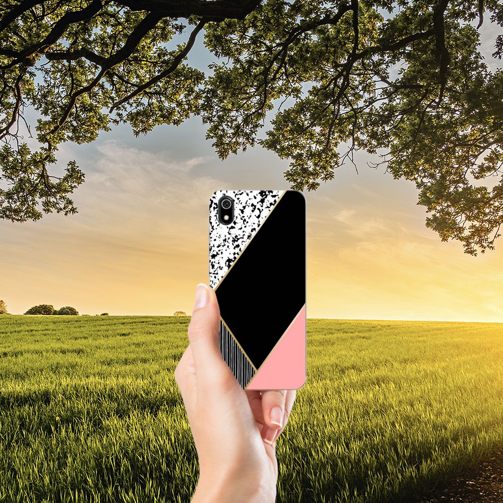 TPU Hoesje Xiaomi Redmi 7A Zwart Roze Vormen Design
