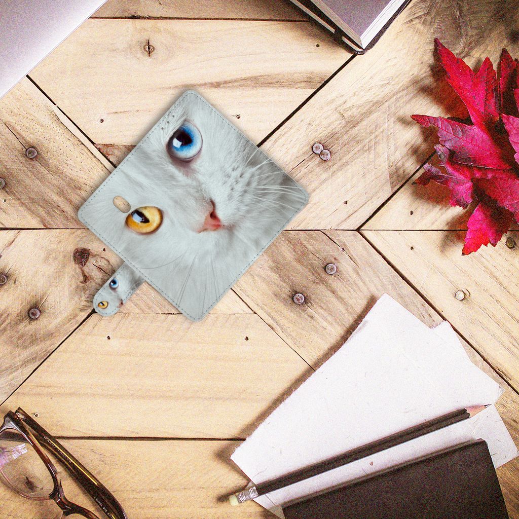 Xiaomi Redmi 8A Telefoonhoesje met magnetisch lipje als sluiting Witte Kat