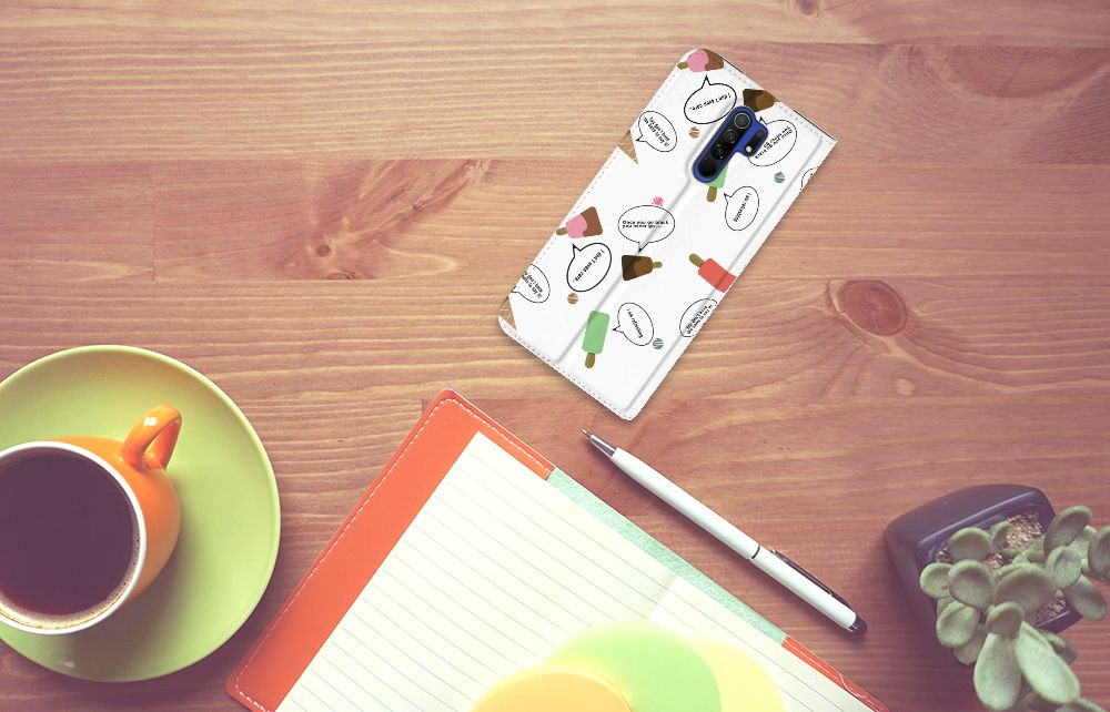 Van deze vrolijke Xiaomi Redmi 9 Flip Style Cover met daarop verschillende soorten ijsjes met tekstwolkjes krijg je sowieso een vrij en zomers gevoel. De zomer komt naar je toe met deze print van ijsjes met tekstwolkjes. Ben je op het strand, dan ontbreekt een lekker ijsje natuurlijk niet. Net zoals je je smartphone bij de hand hebt, met daaromheen een design hoesje met bijzondere ijsjes en tekstwolkjes. Jouw telefoon kan dan de bescherming in de vorm van een stand case met ijsjes zeer goed gebruiken. Alle zijden van dit hoesje worden bedrukt met ijsjes en dankzij de speciale standaard is het erg prettig om filmpjes te bekijken. De case wordt aan de binnenzijde met een magneet afgesloten en de houder aan de binnenzijde is van TPU. Onder alle weersomstandigheden zal deze case met 1 opbergvakje en ijsjes perfect functioneren, ook op het strand met een ijsje in je hand.
