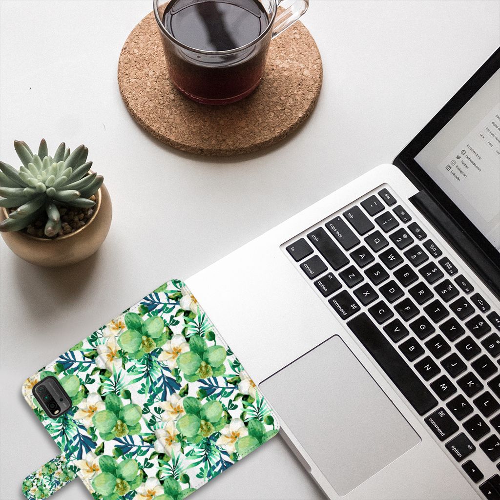 Xiaomi Redmi 9T | Poco M3 Hoesje met ruimte voor drie pasjes Orchidee Groen