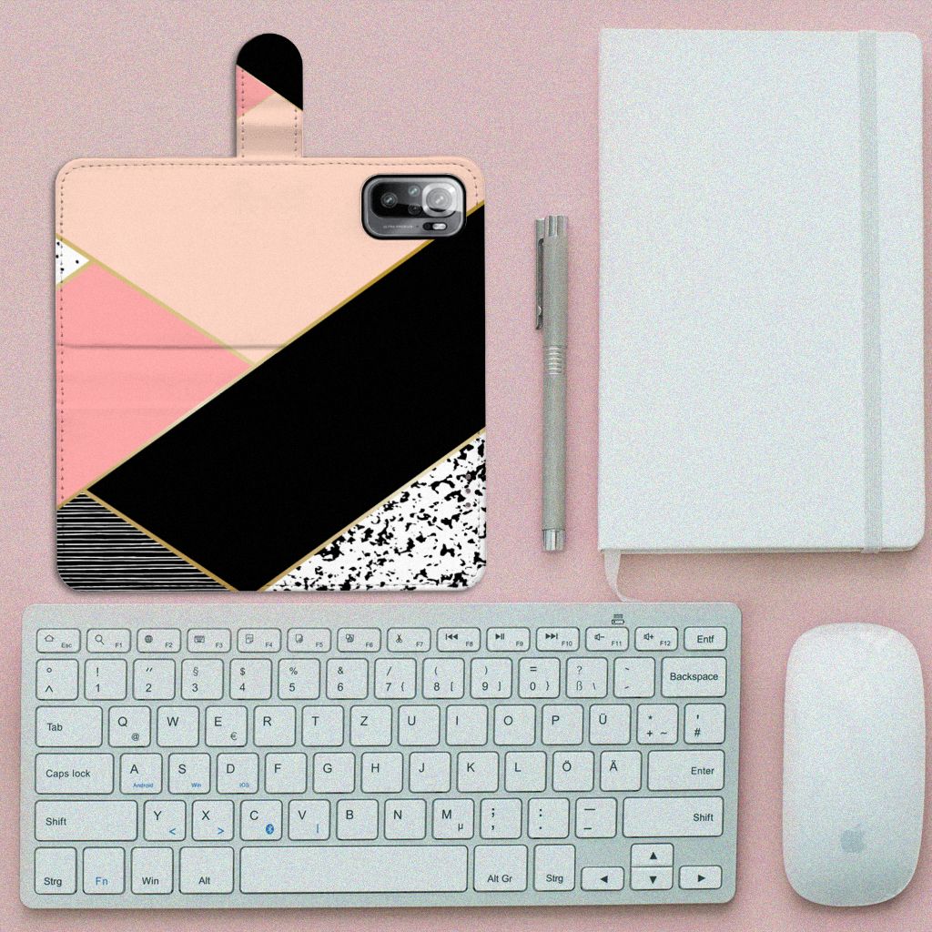 Xiaomi Redmi Note 10/10T 5G | Poco M3 Pro Bookcase met ruimte voor 3 pasjes Zwart Roze Vormen