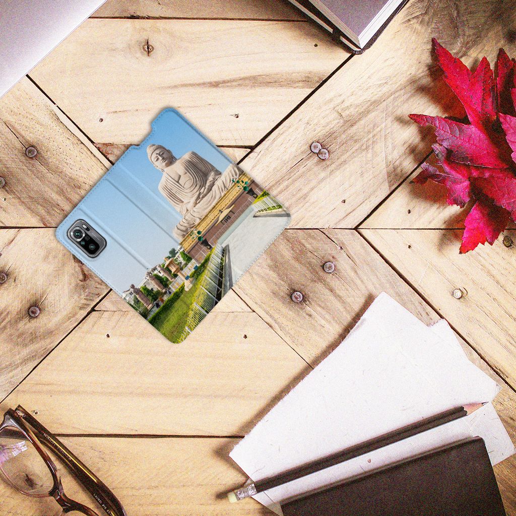 Van dit hoesje met boeddha print word je vanzelf rustig van binnen. Een boeddha staat te allen tijde voor geluk, symbolische genezing, liefde voor de ander, maar ook voor eigenwaarde. Daarnaast staat de boeddha symbool voor eeuwige vriendschap. Boeddhabeelden zie je vooral in tempels, maar tegenwoordig zien we ze ook steeds vaker in huizen en tuinen staan. Een boeddha dient met respect te worden behandeld. Doe dat dus ook met je telefoon. Dat kan met dit hoesje met Boeddha print. De case zorgt ervoor dat jij en je telefoon voor langere tijd in harmonie samen kunnen leven. Het design staat op een Xiaomi Redmi Note 10/10T 5G | Poco M3 Pro Book Cover. Deze case beschermt jouw telefoon aan alle kanten en beschikt over een 1 opbergvakje en een speciale standaard. Het hoesje wordt afgesloten met een magneet aan de binnenzijde. De houder aan de binnenzijde is van TPU. Alle zijden van de stand case worden bedrukt.