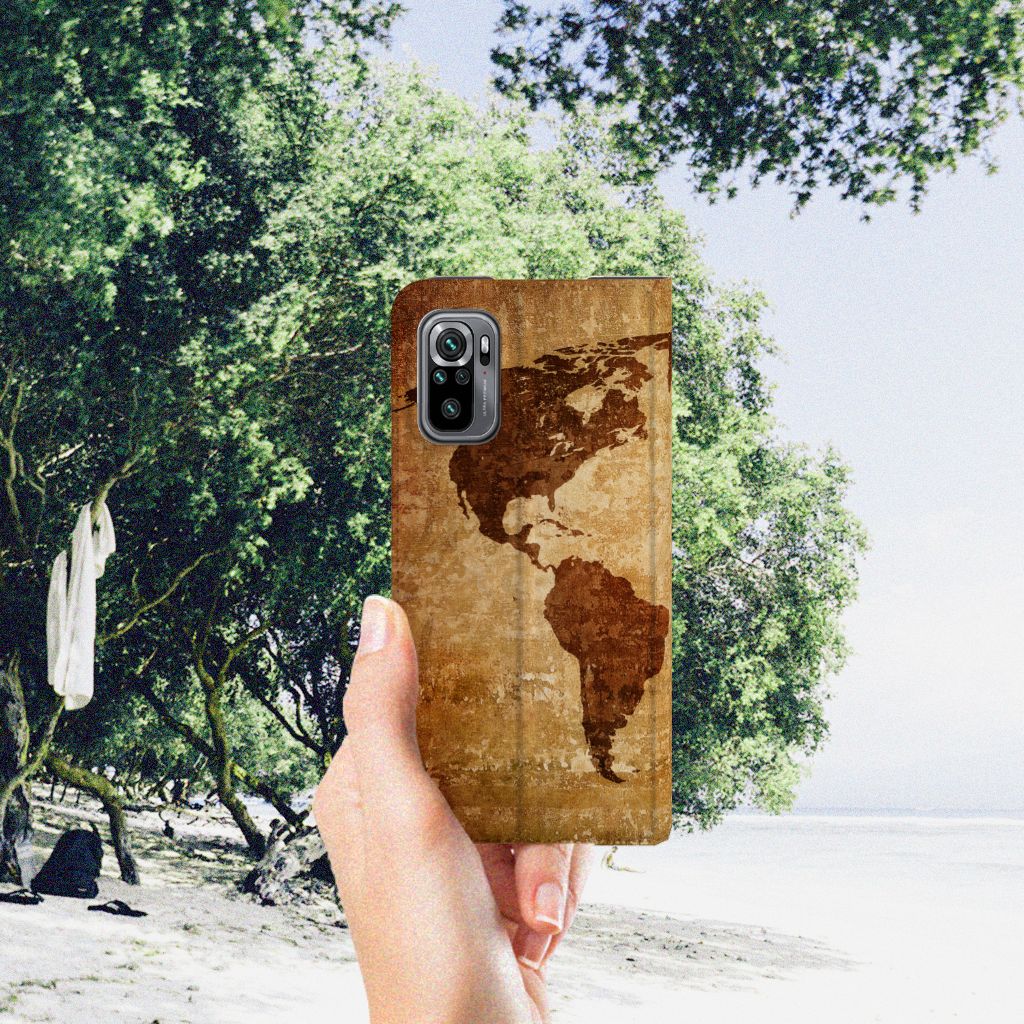 Als je een hoesje koopt met een wereldkaart, kun jij op veilige wijze met je smartphone rond de wereld reizen. Ga je zonder een boekhoesje met wereldkaart het buitenland verkennen, dan loop je veel te groot risico dat je stukken krijgt aan je smartphone. Met als gevolg dat je de belangrijke gebeurtenissen op je reis wellicht niet meer vast kunt leggen om door te sturen aan je vrienden. In het slechtste geval wordt jouw toestel zonder een smartphone hoesje met wereldkaart onbruikbaar. Wij kunnen de wereldkaart bedrukken op een stand case. Een Xiaomi Redmi Note 10/10T 5G | Poco M3 Pro Book Cover beschermt jouw telefoon aan alle kanten en beschikt over een 1 opbergvakje en een speciale standaard. Het hoesje wordt afgesloten met een magneet aan de binnenzijde. De houder aan de binnenzijde is van TPU. Dit stand hoesje met wereldkaart is voor een zeer laag bedrag te bestellen.