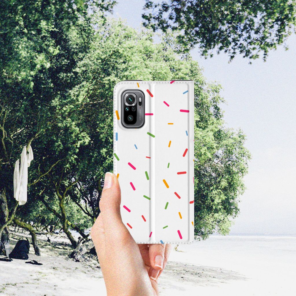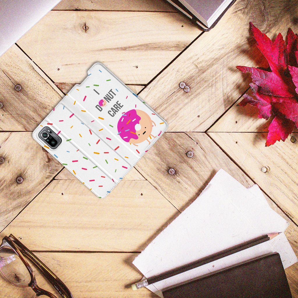 De cartoon met Donut op dit design hoesje geeft jouw smartphone een grappige en vrolijke uitstraling. De Xiaomi Redmi Note 10/10T 5G | Poco M3 Pro Flip Style Cover zorgt ervoor dat je je schouders op zult halen als je telefoon een keer op de grond valt. Omdat er geen schade zal optreden kun jij je weg weer heel makkelijk vervolgen. De grappige Donut Care stand case is een zeer populair product. Allereerst is het nergens anders te krijgen. Het design is namelijk van de hand van onze eigen ontwerper. Daarnaast zal de case jouw smartphone aan alle zijden beschermen. Ook heeft het Donut Care hoesje een vakje aan de binnenzijde en een speciale standaard. Ook kun je je eigen unieke hoesje ontwerpen, met eigen cartoons, foto’s en teksten. De houder aan de binnenzijde van de Donut Care case is van TPU, de buitenzijde van PU leer.