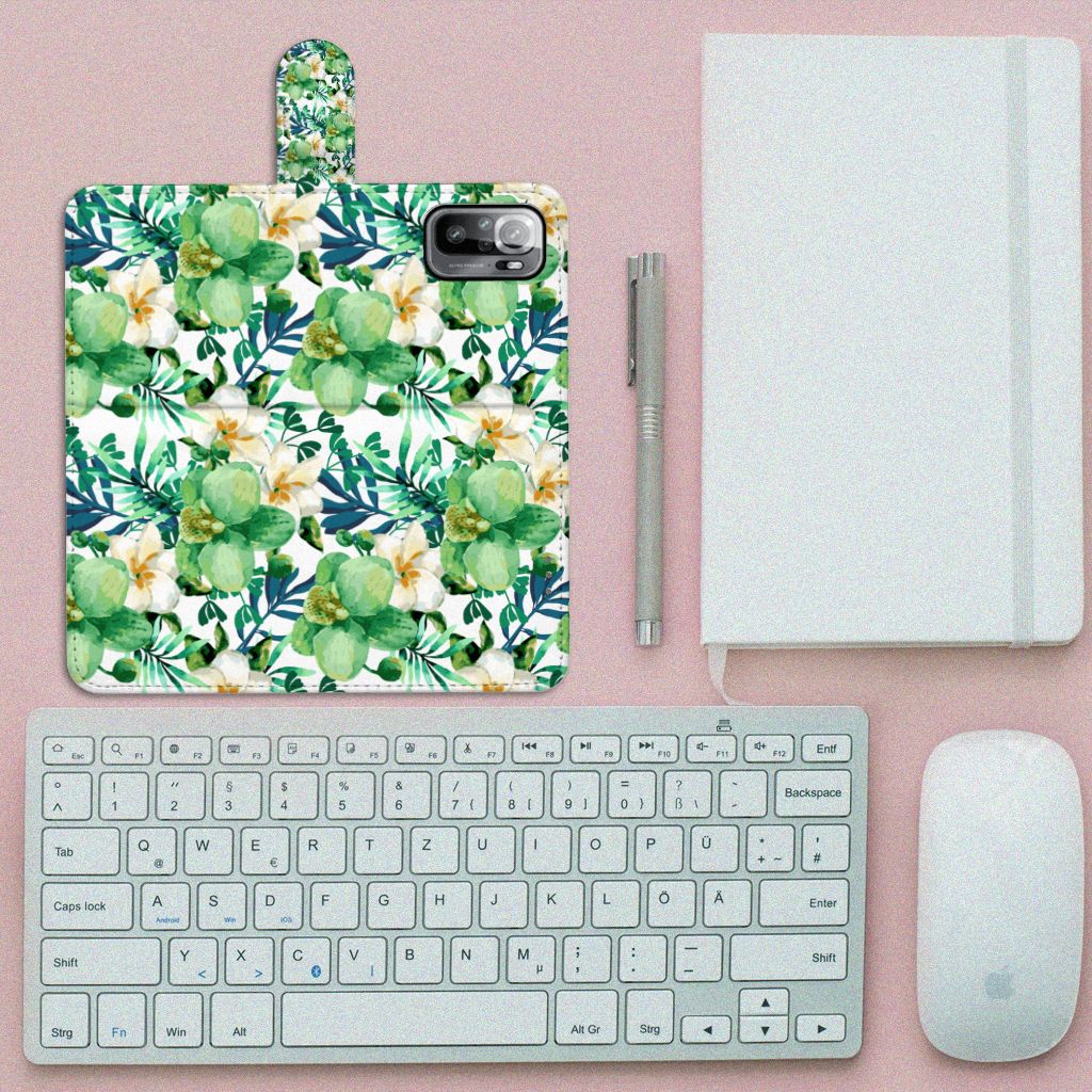 Xiaomi Redmi Note 10/10T 5G | Poco M3 Pro Hoesje met ruimte voor drie pasjes Orchidee Groen