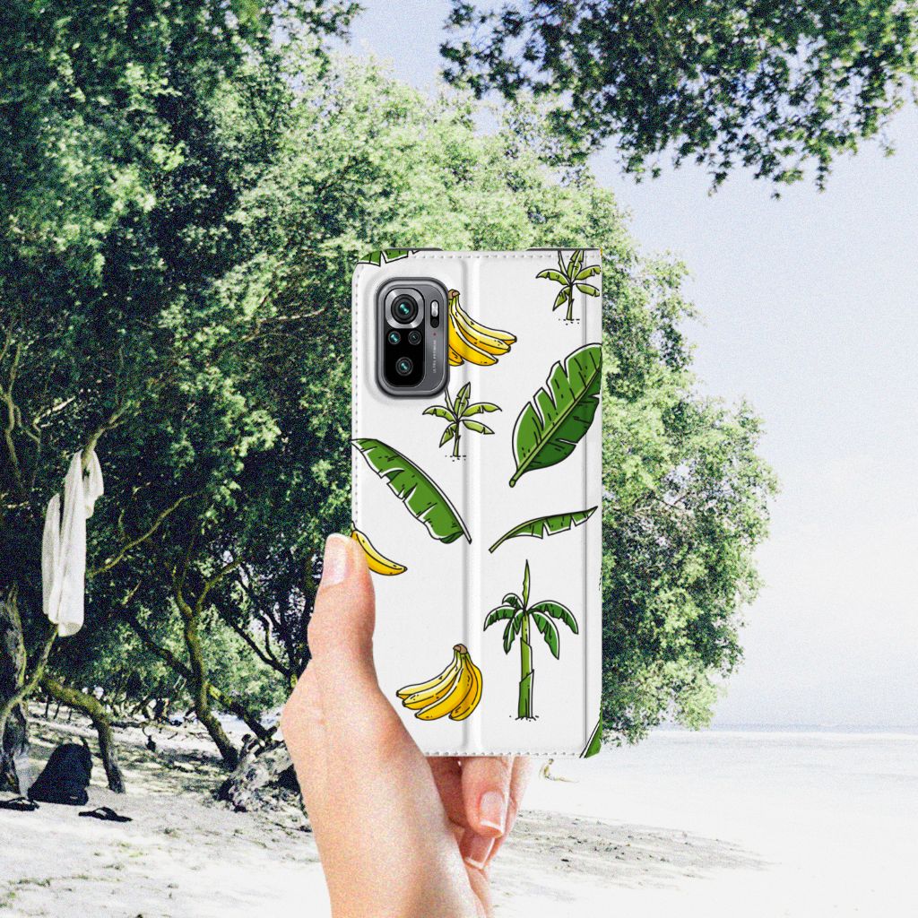 Heb jij al zin om op vakantie te gaan? Dat krijg je hoe dan ook als je één blik werpt op dit vrolijke hoesje voor je Xiaomi Redmi Note 10/10T 5G | Poco M3 Pro met Banana Tree design. Het fleurige tafereel van bananenbomen, bananenbladeren en bananen doet je gedachten afdwalen naar paradijselijke bountystranden met azuurblauwe zee en helderwitte zandpartijen. Kortom: dit hoesje is goed voor je humeur. Naast het luchtige design zijn daar nog meer redenen voor, want dankzij de stevige materialen weet je zeker dat dit Smart Cover je telefoon altijd optimaal beschermt. De solide hoes van PU-leer beschikt ook over een 1 pashouder en een speciale standaard. Het hoesje wordt afgesloten met een magneet aan de binnenzijde. De houder aan de binnenzijde is van TPU. Alle zijden worden bedrukt. Met dit hoesje breng je jezelf in zomerse sferen en gun je jezelf een krasvrije telefoon.