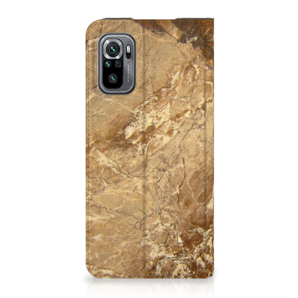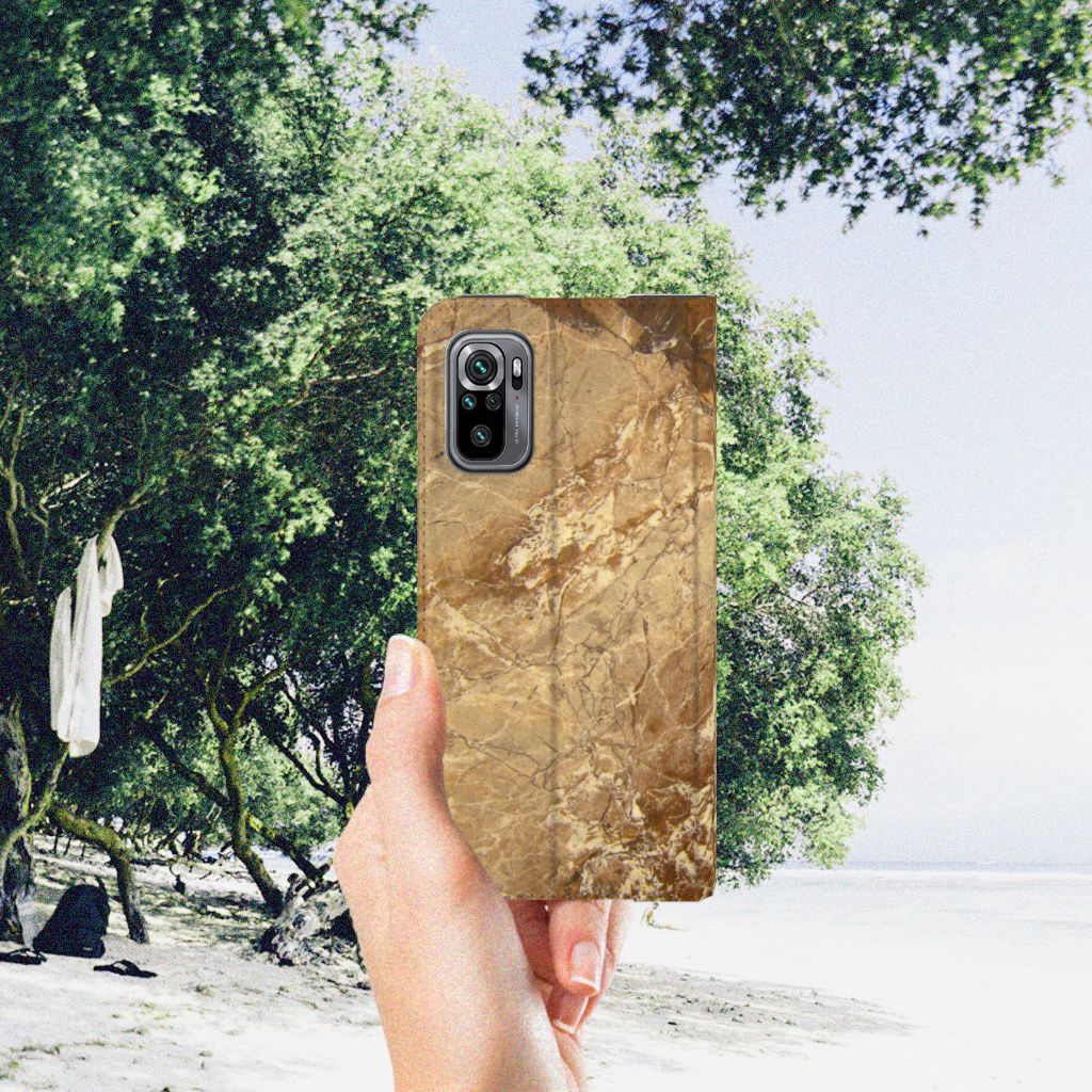 Dit design hoesje met Marmer in lichtbruine kleur is voor de artistiekelingen onder ons. De Grieken en Romeinen wisten het marmer al te waarderen door het in de bouw toe te passen. Naast het witte marmer zijn de diverse soorten marmer in een gevarieerde kleurensamenstelling te krijgen. We hebben verschillende mooie kleuren op design hoesjes gezet, zoals in dit geval het lichtbruine marmer. Dit is een Xiaomi Redmi Note 10/10T 5G | Poco M3 Pro Standcase met marmer in lichtbruine kleur. Het marmer wordt bedrukt op alle zijden van een stand case, die beschikt over 1 vakje voor een pasje en een magnetische sluiting aan de binnenzijde. Verder heeft de hoes een houder van TPU. Door de rijkdom aan kleuren en varianties in afwerking kunnen ontwerpers met marmer schitterende architectonische projecten realiseren. Wij hebben hetzelfde gedaan en onze ontwerper veel vrijheid geboden. Het resultaat zie je terug in deze stand case met lichtbruin marmer, dat de ideale bescherming voor jouw smartphone is.