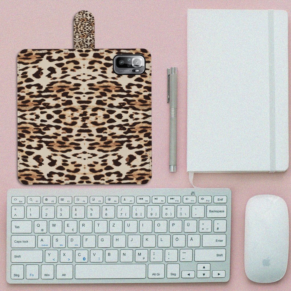 Xiaomi Redmi Note 10/10T 5G | Poco M3 Pro Telefoonhoesje met Pasjes en met magnetische sluitclip Leopard