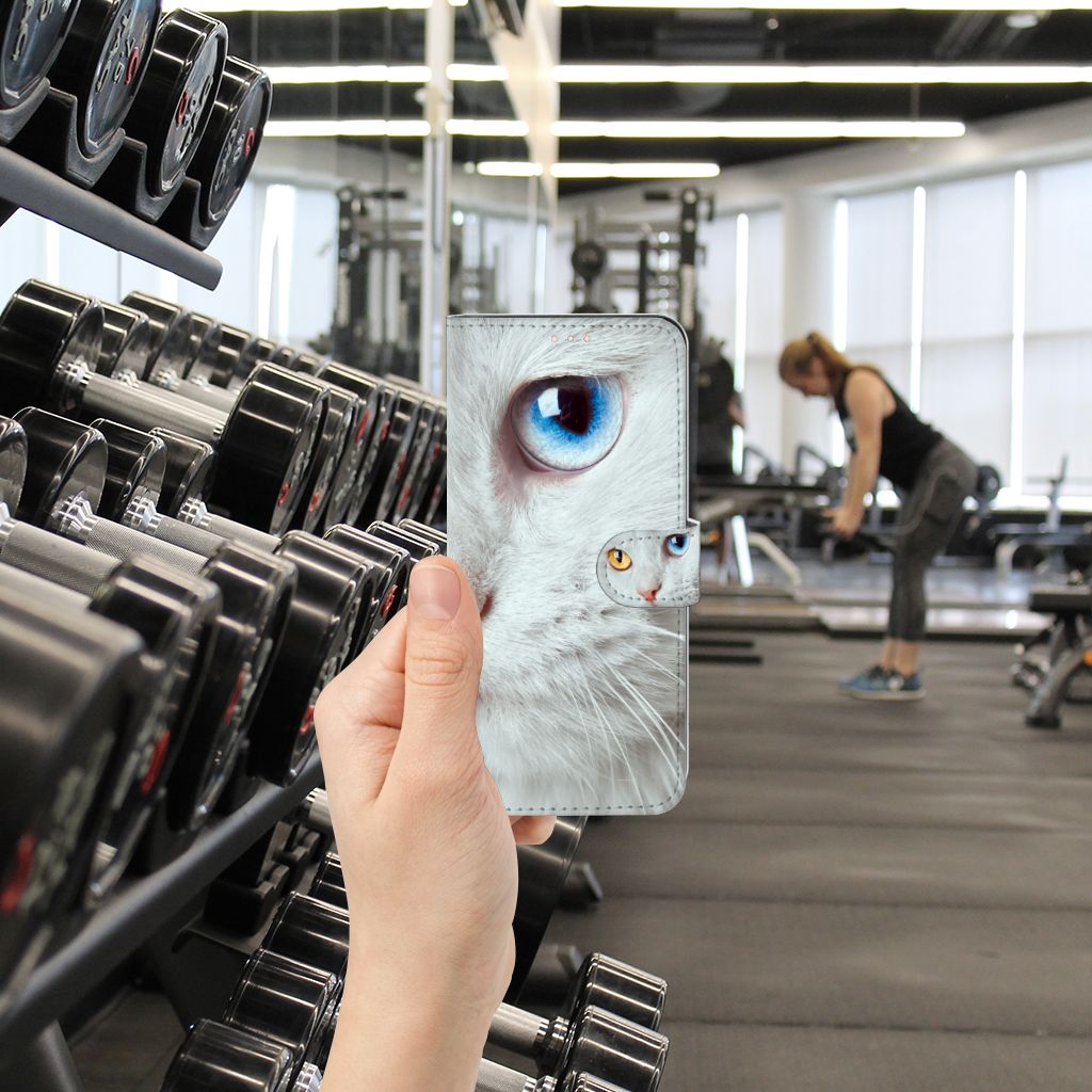 Witte katten zijn erg bijzonder en dat is precies de reden dat wij deze op prominente wijze op dit design hoesje hebben geplaatst. Maar deze witte kat is extra speciaal, doordat de ogen twee verschillende kleuren hebben: blauw en vurig rood. Hiermee heb jij als uniek mens ook een unieke bookcase. Ook de manier waarop dit telefoonhoesje voor de Xiaomi Redmi Note 10/10T 5G | Poco M3 Pro is bedrukt, is bijzonder. Je ziet namelijk een kleinere versie van dezelfde kat terug op het lipje. Hierdoor zie je de speciale witte kat twee keer terugkomen op jouw hoesje. Omdat je waarschijnlijk een dierenliefhebber bent als je dit Telefoonhoesje met Pasjes uitkiest, is dit ook een erg duurzaam hoesje. Het hoesje wordt aan alle kanten met duurzame inkt bedrukt.