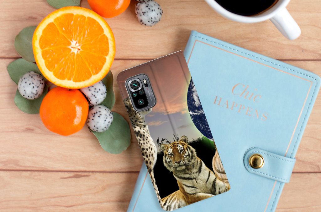 Deze standcase met roofdieren kan exclusief in het bezit van jou komen. Bovendien kun je hier zelf nog unieke teksten en/of beelden aan toevoegen. Je Hoesje maken krijgt dan een unieke identiteit. Roofdieren zoals tijgers op dit hoesje zijn voortdurend op zoek naar een geschikte prooi. De tijgers met aardbol op de achtergrond op deze stand case geven jouw Xiaomi Redmi Note 10 4G | 10S | Poco M5s een hele stoere uitstraling. Deze bijzondere case is van PU-leer (buitenzijde) en TPU (binnenzijde) en beschikt over een houder en een speciale standaard. Verder is deze stand case met roofdieren voorzien van een magnetische sluiting aan de binnenzijde. Je zorgt voor de perfecte bescherming van je smartphone met dit design hoesje met roofdieren met aardbol op de achtergrond.