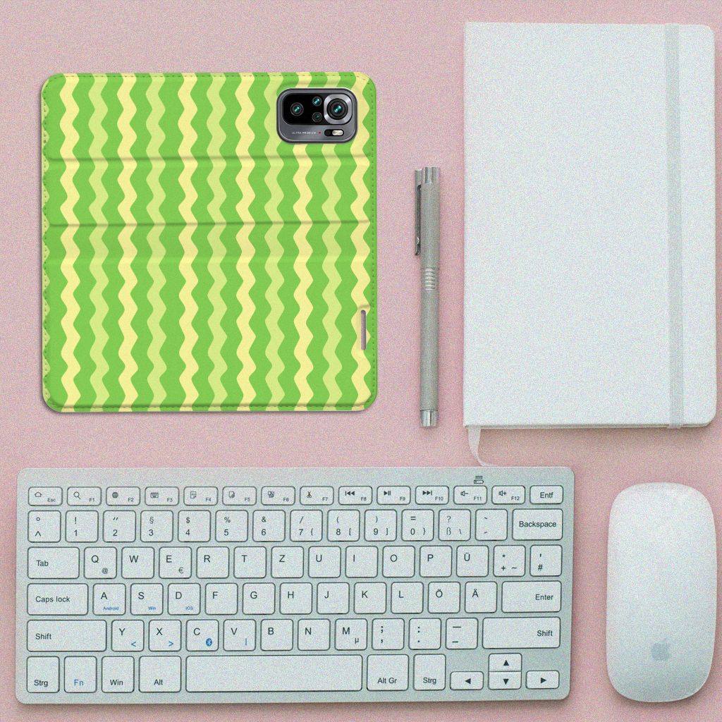 Dit groene design hoesje met groene golven is speciaal ontworpen voor jouw telefoon. We hebben een vleugje geel toegevoegd, zodat er sprake is van variatie. Dit Waves Green hoesje ziet er flitsend uit. Dat kan ook niet anders, als je weet dat we veel energie steken in het bedenken van originele designs. Een heel strak Xiaomi Redmi Note 10 4G | 10S | Poco M5s Hoesje met Magneet, met zeer veel opties. Past dit groene design hoesje met golven goed bij jou? Bestel het dan vandaag nog, tegen zeer lage kosten. Het design staat op een stand case. Deze case met groene golven beschermt jouw telefoon aan alle kanten en beschikt over een 1 opbergvakje en een speciale standaard. Het hoesje wordt afgesloten met een magneet aan de binnenzijde. De houder aan de binnenzijde is van TPU. Alle zijden van de stand case worden bedrukt.