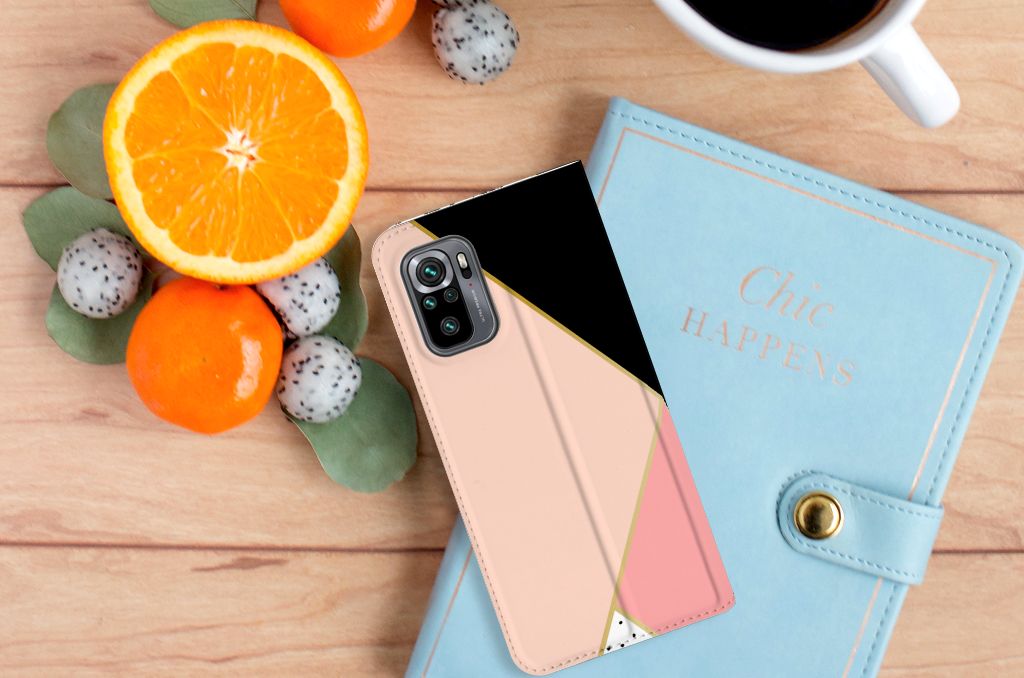 Xiaomi Redmi Note 10 4G | 10S | Poco M5s Print Stand Case Zwart Roze Vormen