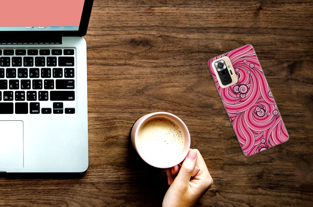 Deze mooie Xiaomi Redmi Note 10 Pro Hoesje maken met Swirl Pink is een geweldige en duurzame bescherming voor jouw smartphone. De kleuren zijn zeer subtiel op het hoesje gezet en worden op de bovenkant van de case bedrukt. Dit drukwerk doen we in eigen beheer, zodat het roze en het zwart ook uitstekend tot zijn recht komen op de tpu case. Een tpu hoesje is perfect op maat gemaakt en heeft een mooie uitstraling. Daarnaast is de case zeer flexibel en het materiaal is onbreekbaar. De case heeft opstaande randen ter bescherming van het scherm. De randen van het tpu hoesje worden niet in roze met zwart bedrukt. Nergens tref je een hoesje met deze kleuren aan dat zo goed past bij jouw smartphone.
