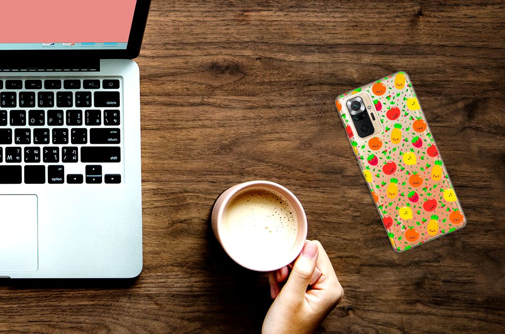 Een fris, fruitig en vrolijk hoesje, deze case met afbeeldingen van aardbeien, ananassen, appels, sinaasappels en citroenen. Minstens twee stuks fruit per dag wordt aanbevolen als dagelijkse hoeveelheid voor de mens. Dit verkleint de kans op allerlei ziekten. Dus met het aantal stukken fruit op de Xiaomi Redmi Note 10 Pro Siliconen Case zou je wel een maandje zoet moeten zijn. Met het hoesje zelf kun je je hele leven doen, dit is namelijk niet stuk te krijgen. Dit komt door het sterke en flexibele materiaal waarvan het gemaakt is. De vrolijk stemmende case het desing Fruits maakt jouw telefoon dus zeer duurzaam. Zorg ervoor dat jouw smartphone gezond blijft en kies voor dit hoesje met frivool fruit. Een tpu case met fruit wordt alleen aan de bovenkant bedrukt en is zeer flexibel. De randen van het hoesje blijven transparant en worden niet bedrukt met het fruit.
