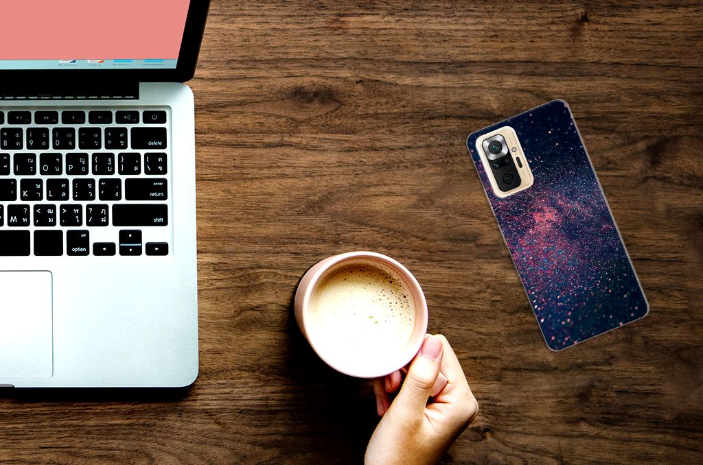 Je waant je in de zevende hemel met dit kunstzinnige, glitterachtige design hoesje met paarse en blauwe kleuren tegen een inktzwarte achtergrond. Het smartphone hoesje heeft ook een wat science fiction achtige allure. Met deze design Stars case zul je zeker opvallen. Als dit je bedoeling is, bestel dat snel dit waanzinnig mooie product voor je Xiaomi Redmi Note 10 Pro. Het telefoonhoesje is van alle gemakken voorzien en combineert een hele fraaie uitstraling met maximaal comfort. Bovendien is het gemaakt van zeer stevig en flexibel materiaal. Het unieke design, door B2C Telecom ontworpen, staat op een TPU Hoesje. Dit hoesje wordt alleen aan de bovenkant bedrukt en is zeer flexibel. De randen van het hoesje blijven transparant en worden niet bedrukt. Met dit hoesje past jouw telefoon altijd in je broekzak.