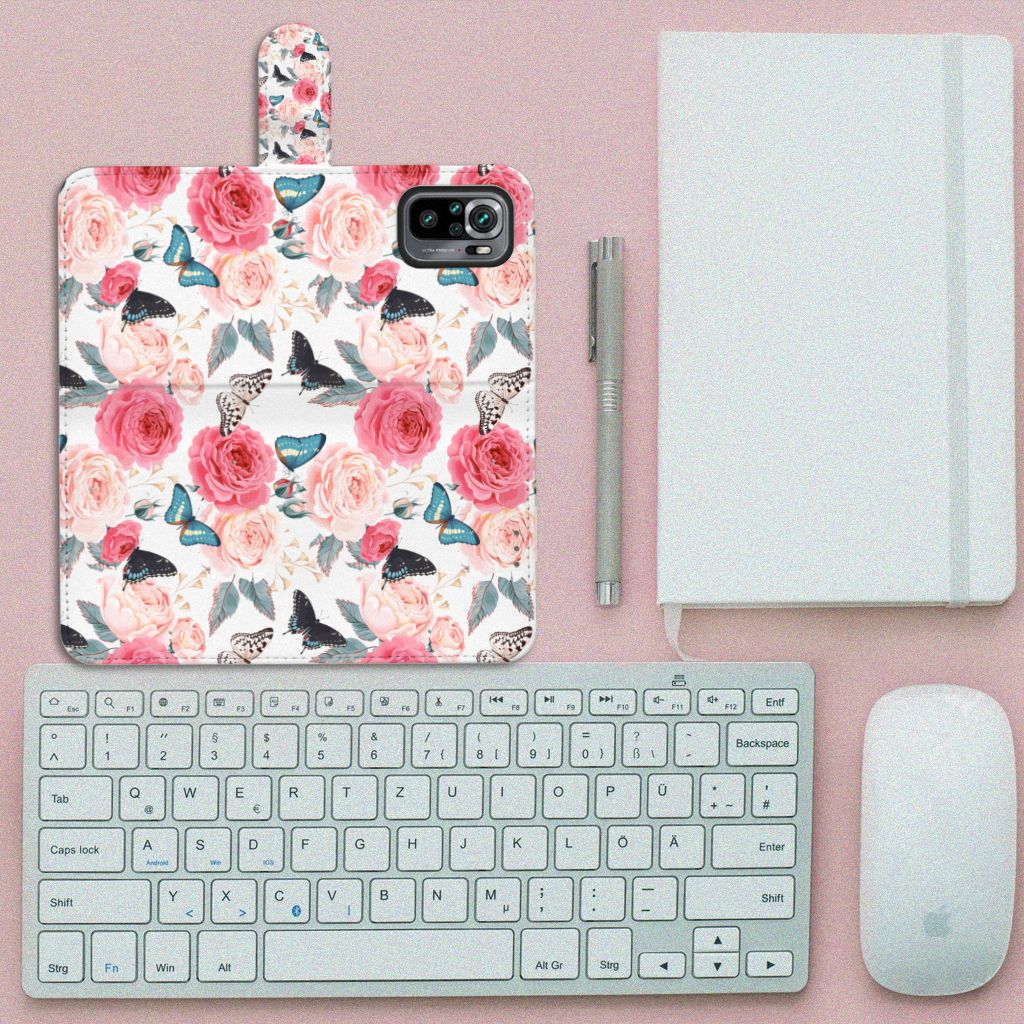 Xiaomi Redmi Note 10S | 10 4G | Poco M5s Hoesje gemaakt van TPU en kunstleer Butterfly Roses