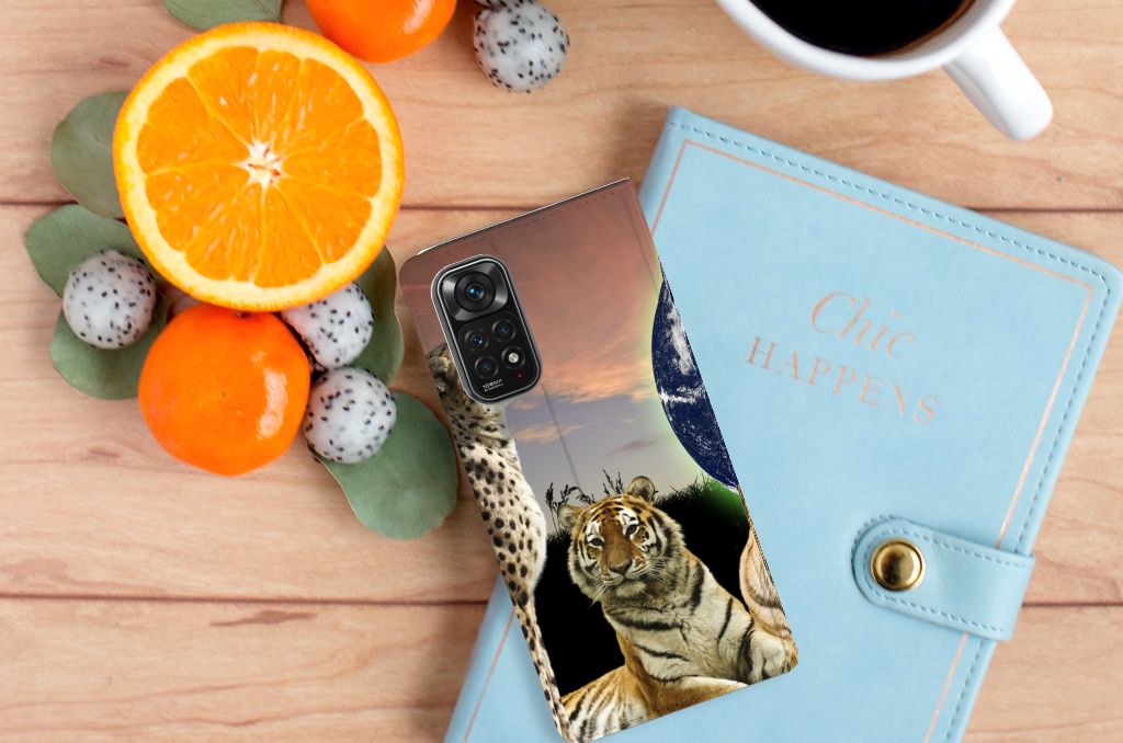 Deze standcase met roofdieren kan exclusief in het bezit van jou komen. Bovendien kun je hier zelf nog unieke teksten en/of beelden aan toevoegen. Je Hoesje maken krijgt dan een unieke identiteit. Roofdieren zoals tijgers op dit hoesje zijn voortdurend op zoek naar een geschikte prooi. De tijgers met aardbol op de achtergrond op deze stand case geven jouw Xiaomi Redmi Note 11/11S een hele stoere uitstraling. Deze bijzondere case is van PU-leer (buitenzijde) en TPU (binnenzijde) en beschikt over een houder en een speciale standaard. Verder is deze stand case met roofdieren voorzien van een magnetische sluiting aan de binnenzijde. Je zorgt voor de perfecte bescherming van je smartphone met dit design hoesje met roofdieren met aardbol op de achtergrond.