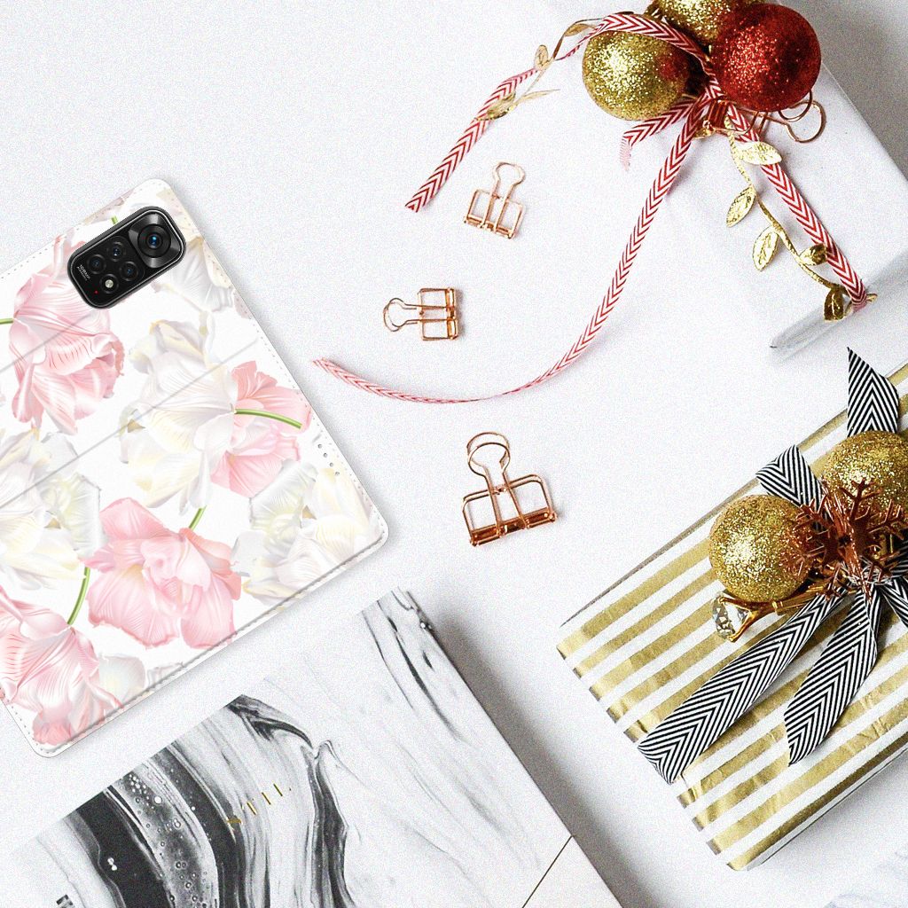 Een bosje bloemen doet een mens (en zijn smartphone) goed. De witte en roze bloemen op dit Xiaomi Redmi Note 11/11S Smart Cover geven jouw smartphone een zeer mooie uitstraling. Je wordt er ook meteen een stuk rustiger van als je aan het appen of aan het bellen bent. Valt dan je telefoon op de grond, dan zal er dankzij de stand case met het design Lovely Flowers ontstaan. Onze stand cases met roze en witte bloemen zien er zeer prettig uit en zijn heel praktisch, wat blijkt uit onder meer het vakje aan de binnenkant en de handige standaard waarmee je de smartphone rechtop op tafel neer kunt zetten. De roze en witte bloemen passen goed op alle zijden van de case. Op deze stand case van leer en TPU (houder aan de binnenkant) kun je trouwens ook je eigen bloemige ontwerp zetten. In een paar simpele stappen maak je zelf een stand hoesje met daarop jouw mooiste bloemen.