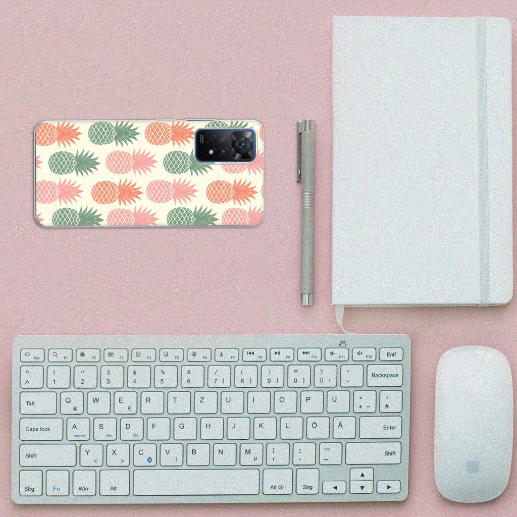 Ananas is een woord uit het Tupi, de taal van de Tupi-indianen, en betekent uitmuntende vrucht. Dit fruit van zeer hoge kwaliteit staat op onze superieure boekhoesjes, stand cases, hard cases en TPU cases. Jij blijft er gezond uitzien als je zo nu en dan een hap neemt van een Ananas , jouw smartphone blijft tip top in orde als je er een leuk telefoonhoesje omheen doet. Een ananas heeft stevig, veerkrachtig vruchtvlees. Een beetje te vergelijken met het TPU in onze hoesjes. TPU is elastisch materiaal, dat zeer buigzaam is. Vandaar dat het zeer schokbestendig is. Het ananas design staat op een staat op een TPU case. Deze Xiaomi Redmi Note 11 Pro 5G Siliconen Case wordt alleen aan de bovenkant bedrukt en is zeer flexibel. De randen van het hoesje blijven transparant.