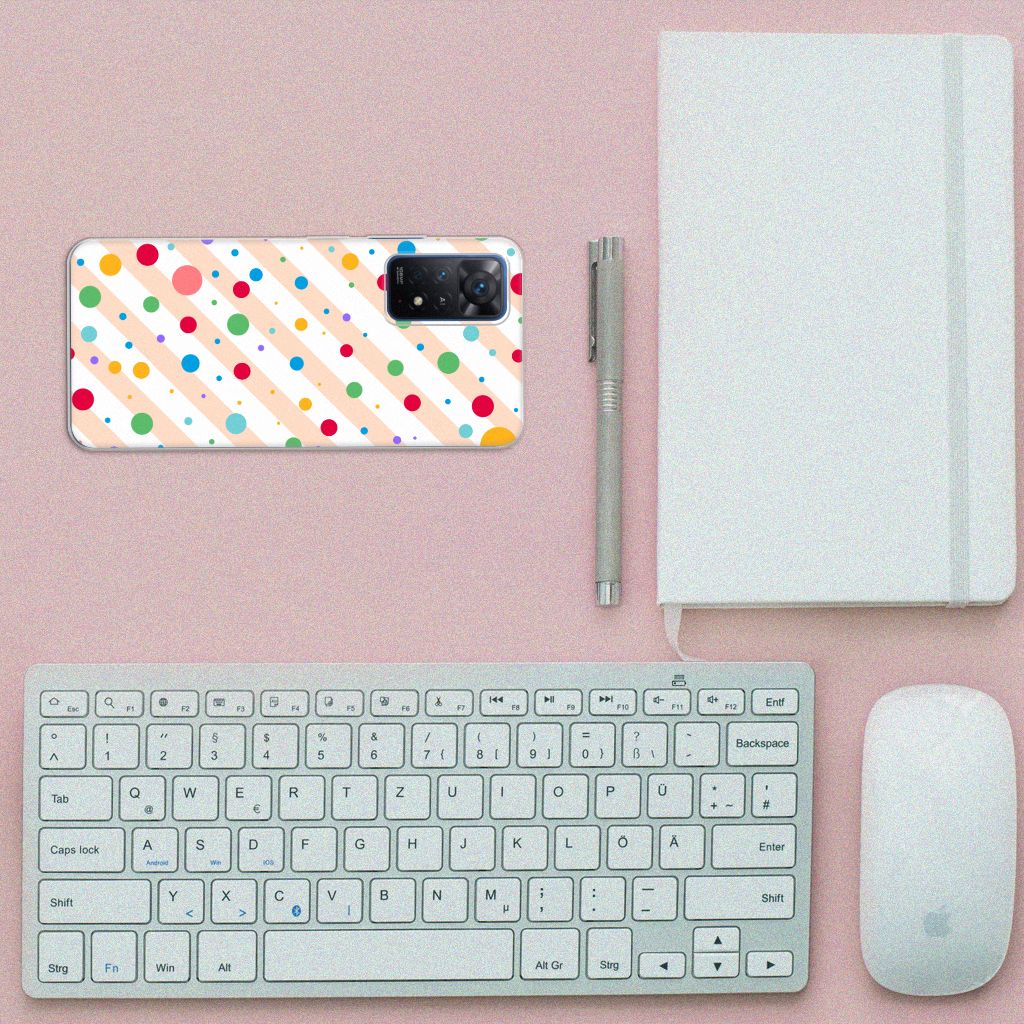 Een Xiaomi Redmi Note 11 Pro 5G TPU bumper met verschillende kleuren stippen is een schitterende bescherming van jouw smartphone. De tpu case met het design Dots in alle kleuren van de regenboog komt voor jou als geroepen. Maak je geen gebruik van dit zeer mooie hoesje, dan kan het met jouw smartphone een beetje beroerd aflopen. Deze mooie tpu case met verschillende soorten klompen in verschillende kleuren is zo’n beetje de meest flexibele case die er bestaat. Het hoesje met stippen zorgt voor een goede bescherming van je smartphone, vooral aan de achterzijde en zijkanten. Met een tpu hoesje met stippen in verschillende kleuren blijft jouw gsm volledig in tact. Heb je liever een tpu case met stippen in andere opvallende kleuren? Ontwerp dan zelf een tpu case met je eigen foto’s en teksten! De case wordt aan de achterzijde bedrukt met klompen, de zijkanten blijven doorzichtig.