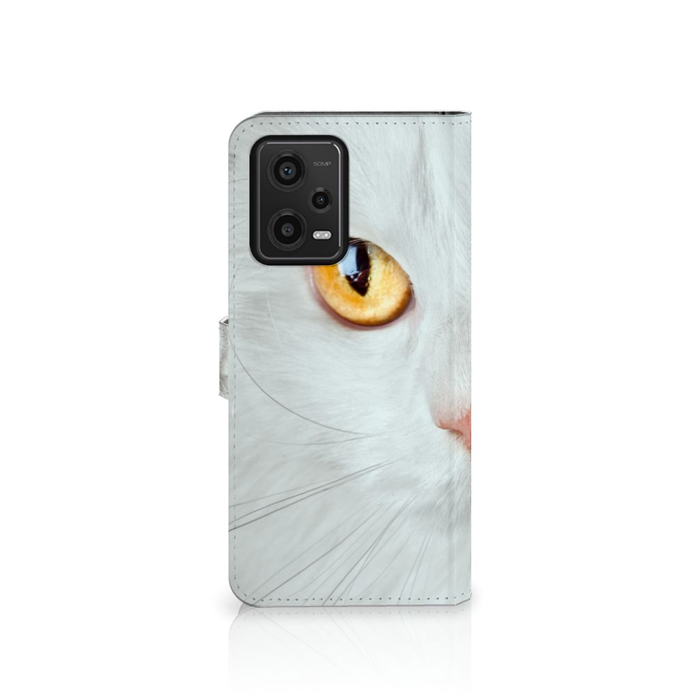 Xiaomi Redmi Note 12 5G | Poco X5 Telefoonhoesje met magnetisch lipje als sluiting Witte Kat