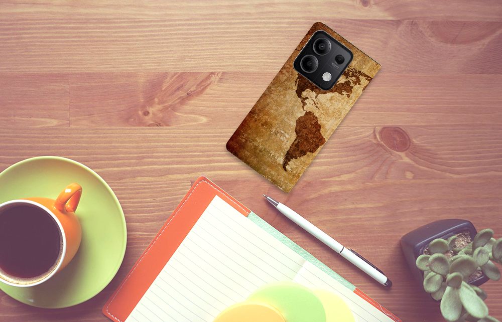 Als je een hoesje koopt met een wereldkaart, kun jij op veilige wijze met je smartphone rond de wereld reizen. Ga je zonder een boekhoesje met wereldkaart het buitenland verkennen, dan loop je veel te groot risico dat je stukken krijgt aan je smartphone. Met als gevolg dat je de belangrijke gebeurtenissen op je reis wellicht niet meer vast kunt leggen om door te sturen aan je vrienden. In het slechtste geval wordt jouw toestel zonder een smartphone hoesje met wereldkaart onbruikbaar. Wij kunnen de wereldkaart bedrukken op een stand case. Een Xiaomi Redmi Note 13 5G Book Cover beschermt jouw telefoon aan alle kanten en beschikt over een 1 opbergvakje en een speciale standaard. Het hoesje wordt afgesloten met een magneet aan de binnenzijde. De houder aan de binnenzijde is van TPU. Dit stand hoesje met wereldkaart is voor een zeer laag bedrag te bestellen.