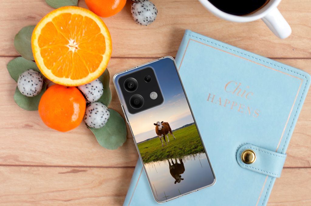 Het levert een idyllisch plaatje op, dit hoesje met een koe en ondergaande zon op de achtergrond. Door een koe buiten te laten lopen en grazen, hebben ze minder kans om ziek te worden. De Koe graast het liefst met soortgenoten, al zijn deze een stukje van de koe op de case verwijderd. Dit levert ook een mooi plaatje op, zoals je kunt zien op dit design hoesje. Dit tpu hoesje met koeien ziet er flexibel uit en is voorzien van alle uitsparingen. Een Xiaomi Redmi Note 13 5G TPU Hoesje met koeien beschermt jouw smartphone vooral aan de achterkant en zijkanten. De zijkanten blijven transparant, de rest van het hoesje is bedrukt. Koeien herkauwen het liefst liggend, behalve wanneer het regent. Zo goed als grazen voelt voor koeien, zo duurzaam zal jouw smartphone blijven met dit design hoesje. Het TPU is schokabsorberend en niet te breken. De TPU case past altijd in je broekzak.