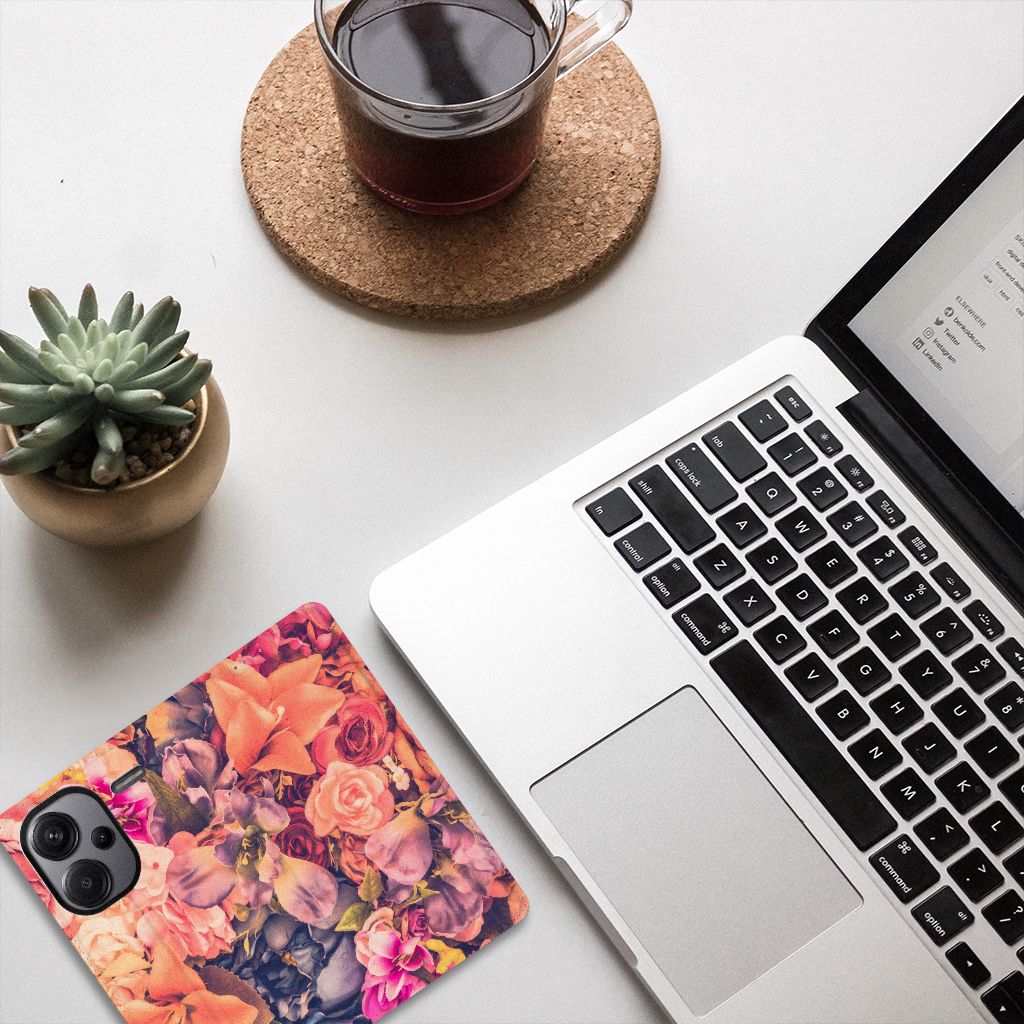 Dit Bosje Bloemen doet een mens en zijn smartphone goed. De oranje, paarse en roze bloemen op deze Xiaomi Redmi Note 13 Pro Plus Smart Cover geven jouw smartphone een zeer sierlijke uitstraling. Je wordt er ook meteen vrolijker van als je aan het appen, mailen of aan het bellen bent. Valt dan je telefoon op de grond, dan zal er dankzij de stand case met oranje, paarse en roze bloemen geen schade ontstaan. Onze stand cases met oranje, paarse en roze bloemen bieden de allerbeste bescherming en zijn heel praktisch, wat blijkt uit onder meer het vakje aan de binnenkant en de handige standaard waarmee je de smartphone rechtop op tafel neer kunt zetten. De oranje, paarse en roze bloemen passen goed op alle zijden van de case. Op deze stand case van leer en TPU (houder aan de binnenkant) is het ook mogelijk je eigen ontwerp te zetten. In no time maak je zelf een stand case met daarop foto’s van jouw favoriete bloemen.