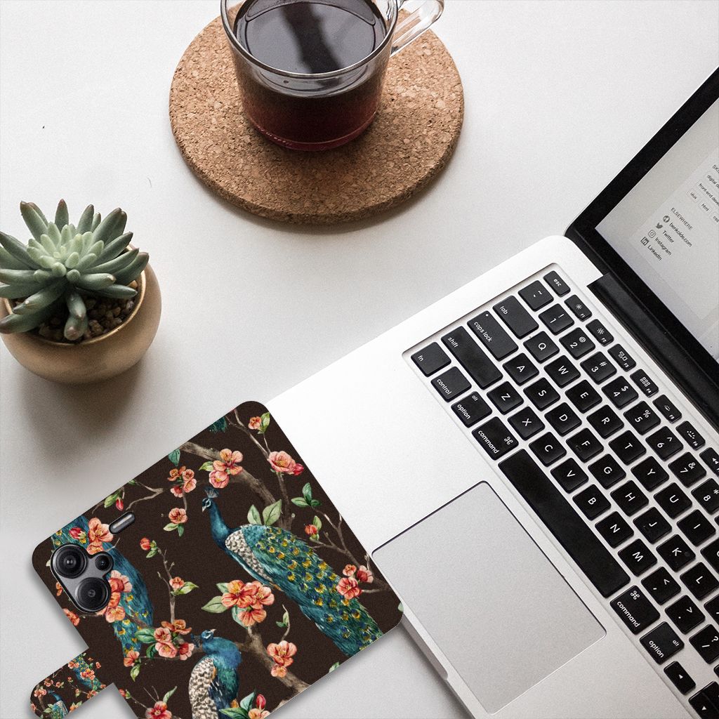 Xiaomi Redmi Note 13 Pro Plus Telefoonhoesje sluit met magnetisch lipje Pauw | Bloemen