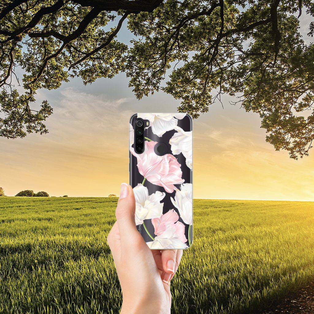 Een bosje bloemen doet een mens (en zijn smartphone) goed. De witte en roze bloemen op deze Xiaomi Redmi Note 8T TPU Case geven jouw smartphone een zeer mooie uitstraling. Je wordt er ook meteen een stuk rustiger van als je aan het appen of aan het bellen bent. Valt dan je telefoon op de grond, dan zal er dankzij de tpu case met het design Lovely Flowers ontstaan. Helemaal niet als je er een screenprotector bij hebt gekocht. Onze tpu cases met roze en witte bloemen zien er zeer prettig uit en zijn heel praktisch, getuige onder meer de opstaande randen en het flexibele materiaal. Alleen de achterkant van de tpu case wordt bedrukt met roze en witte bloemen. Op deze tpu case kun je trouwens ook een eigen ontwerp zetten. In een paar simpele stappen ontwerp je zelf een stand case met daarop jouw favoriete bloemen.