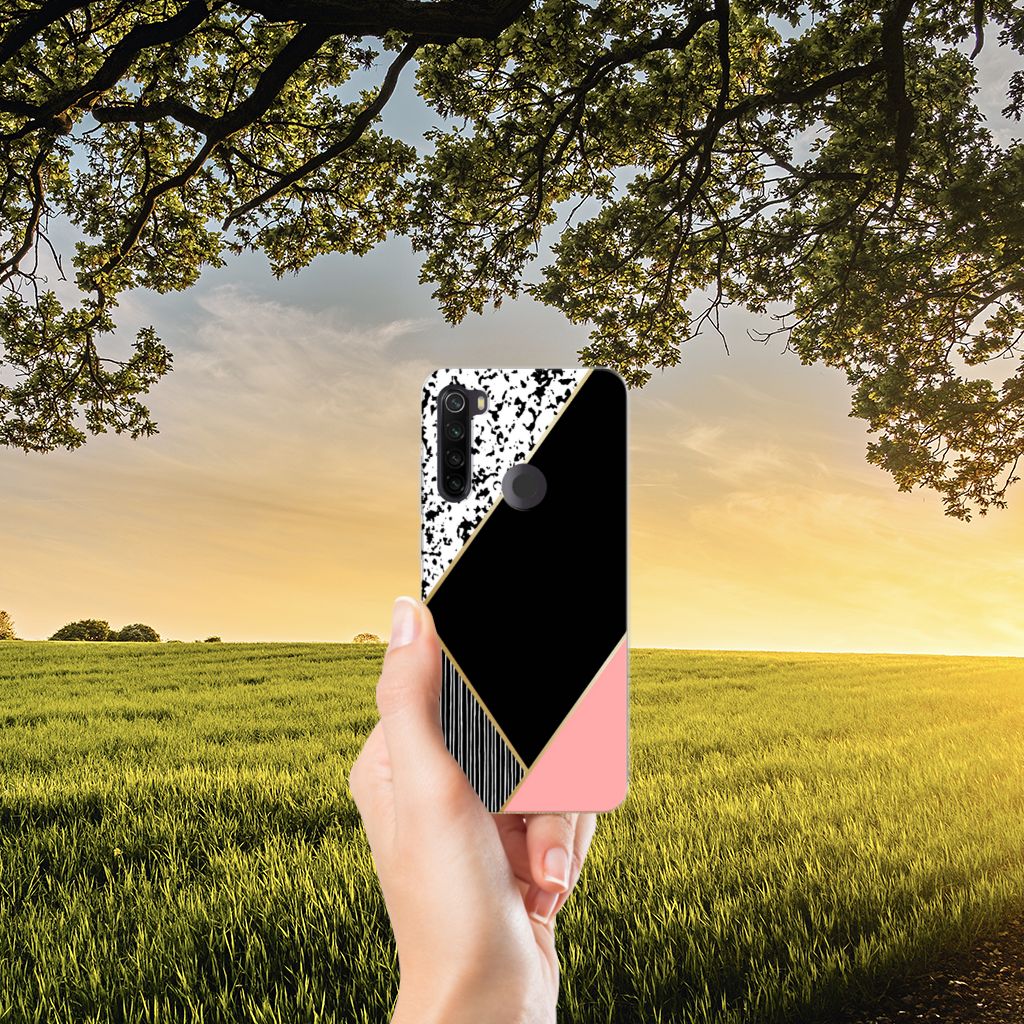 TPU Hoesje Xiaomi Redmi Note 8T Zwart Roze Vormen Design