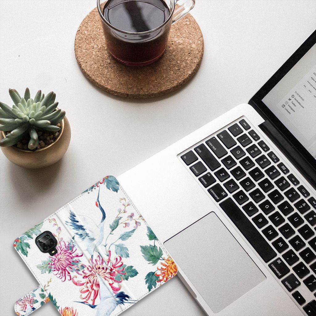 Xiaomi Redmi Note 9 Pro | Note 9S Telefoonhoesje sluit met magnetische lipje Bird Flowers