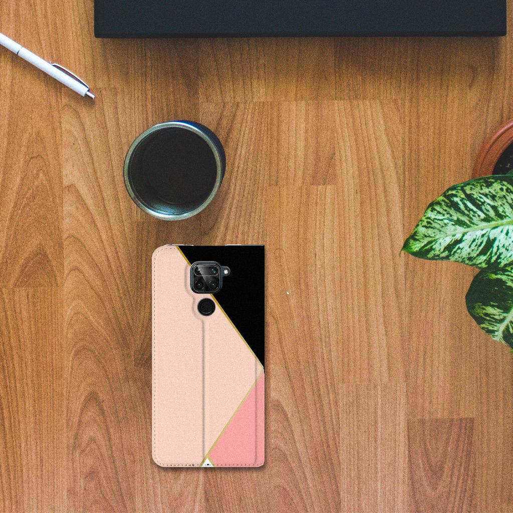 Xiaomi Redmi Note 9 Print Stand Case Zwart Roze Vormen