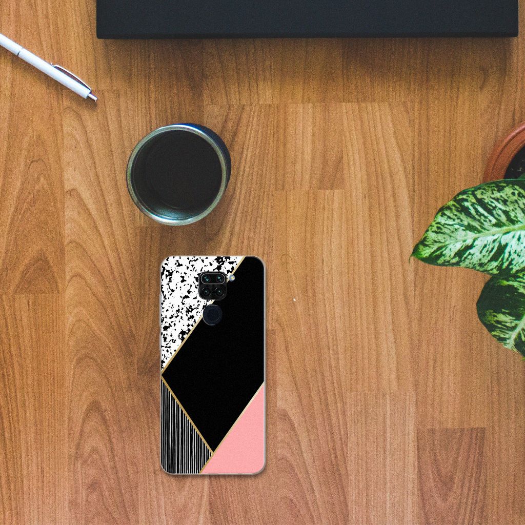 TPU Hoesje Xiaomi Redmi Note9 Zwart Roze Vormen Design